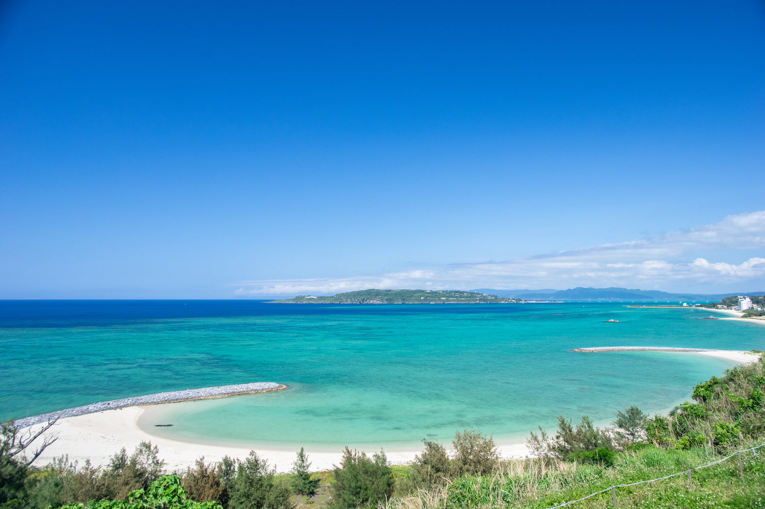 瀬底島をの臨む高台から見下ろす美しいビーチ