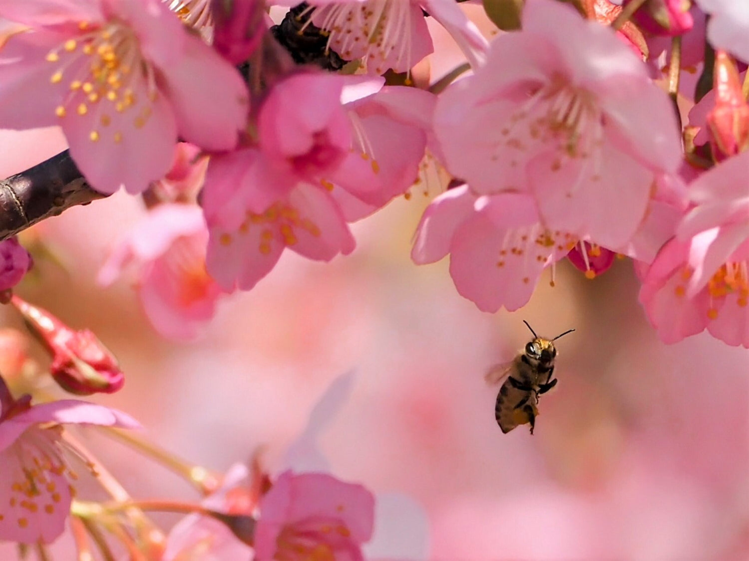 河津桜とミツバチ
