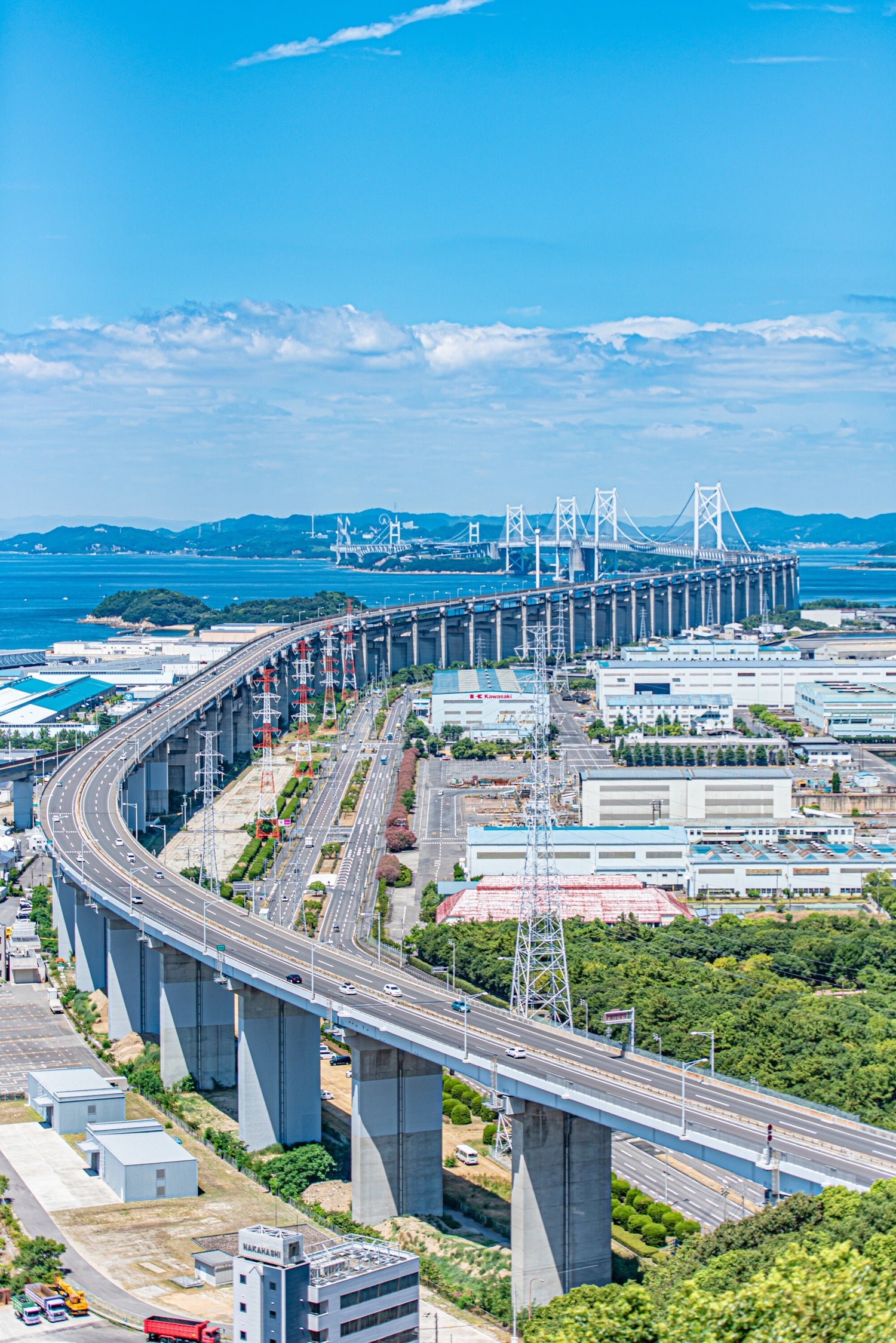 夏空と真っ青な瀬戸内海へ向かう橋が印象的でした。