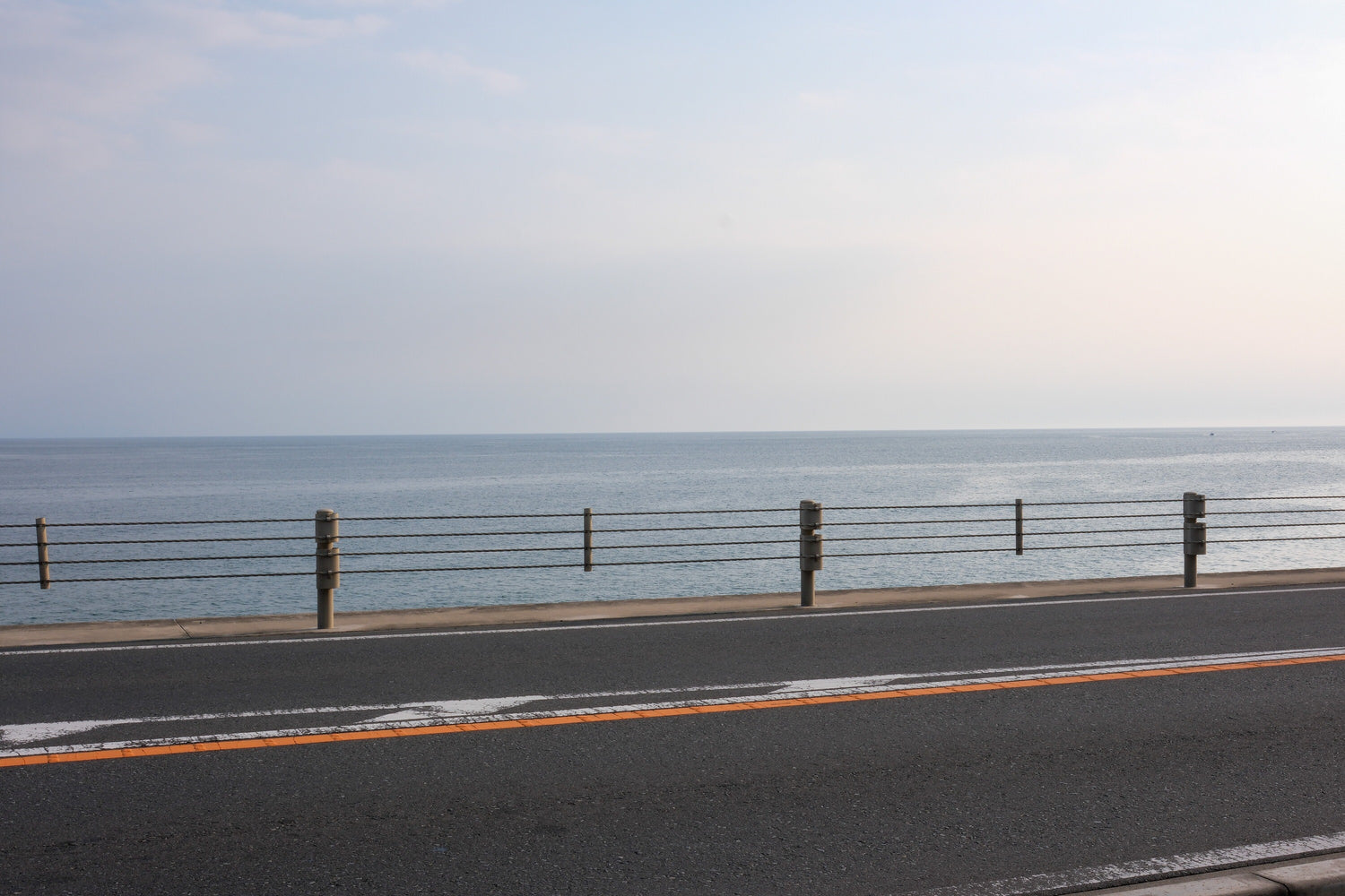 ガードレールの向こうには、波もたっていない静かな海が広がっていました。