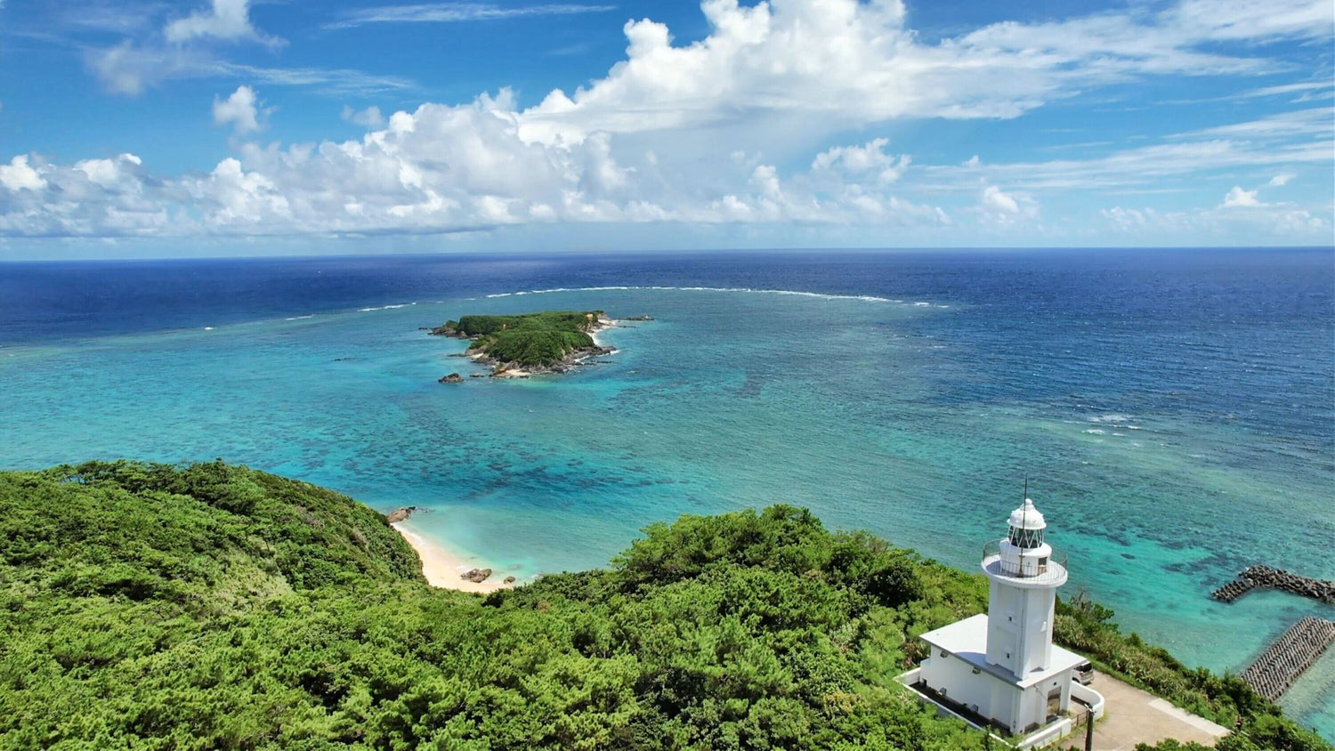 沖縄北部の東海岸にあります。 国頭村の安田集落の岬に立つ灯台です。 国頭村の観光名所で「ヤンバルクイナ生態展示学習施設」というヤンバルクイナが間近で見られる施設が近くにあります