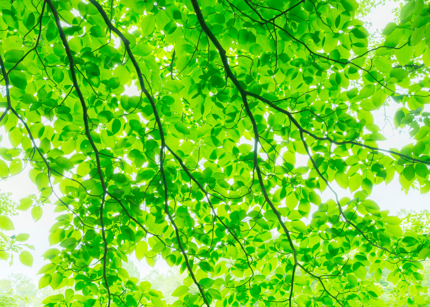 ふと見上げると眩い光に新緑の葉が輝いていました