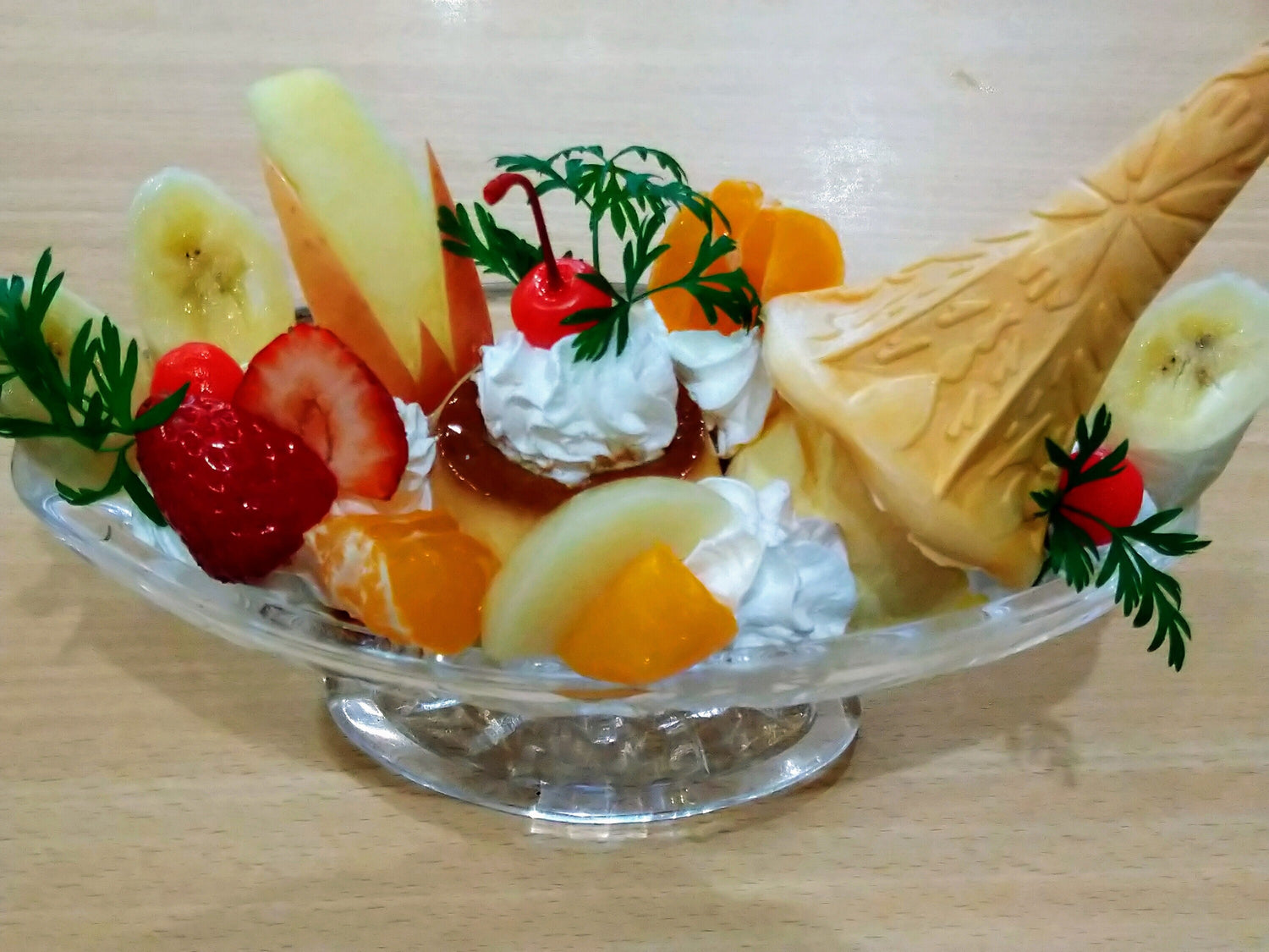自宅から徒歩10分程くらいの所にある洋食レストランで、3時のおやつに賞味したプリンアラモードですが、フルーツたっぷりで美味しかったです~。