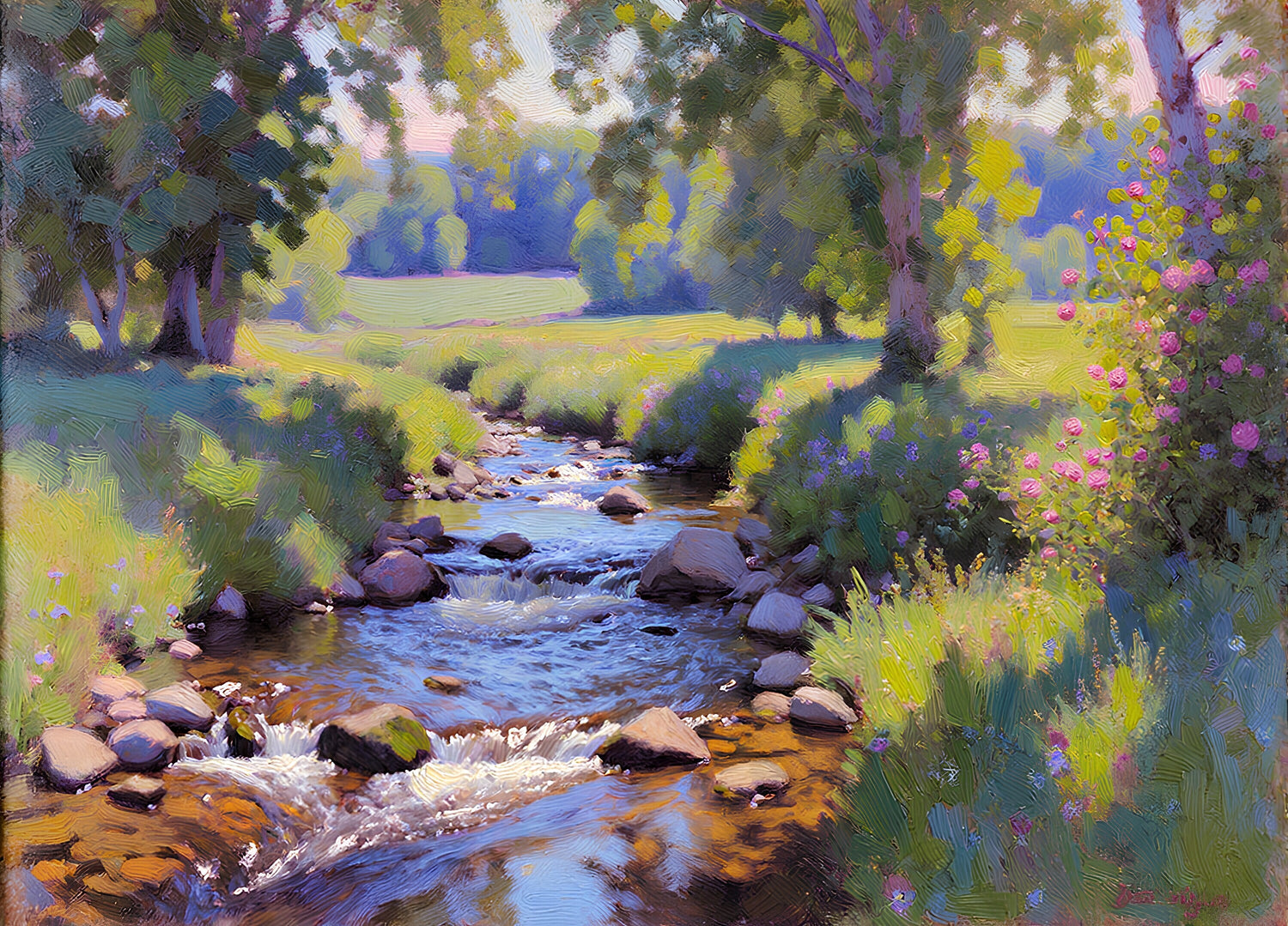 初夏の田園を流れる小川をパステルカラー調にしました。