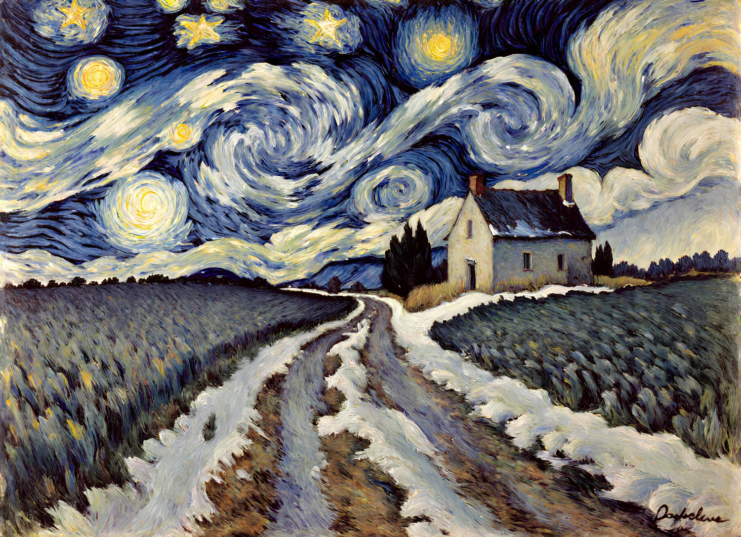 田園地帯の冬の夜