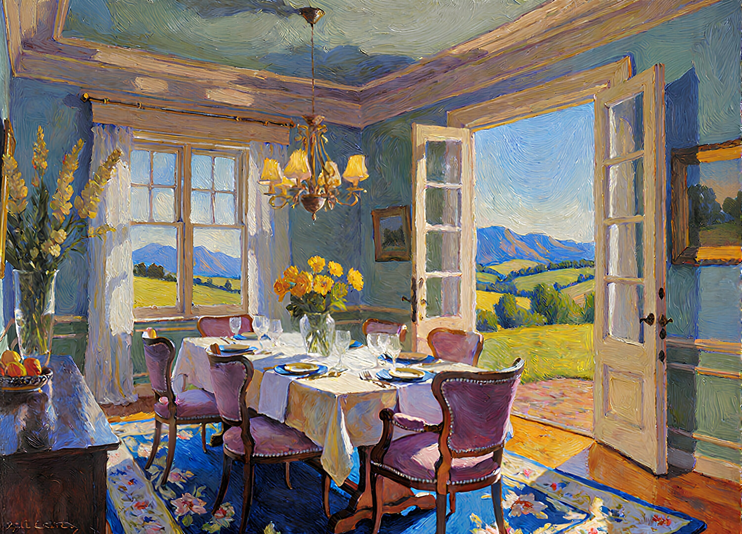 田園地帯の邸宅のダイニングルーム