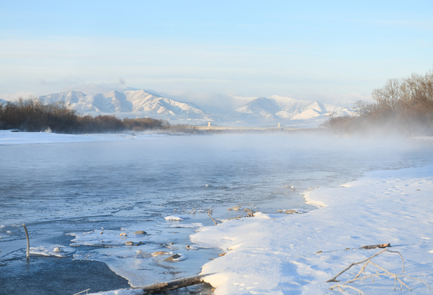 冷え込む朝はマイナス20℃以下になり、川から湯気が立ち上がります。
