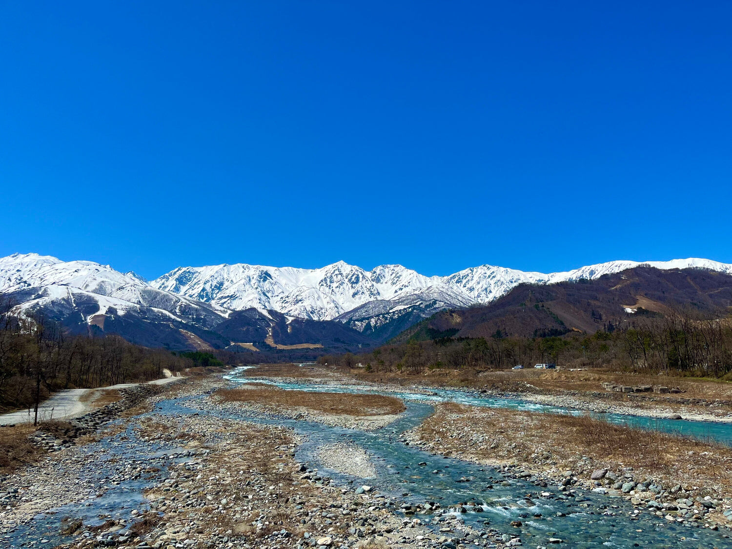 春の景色ですが、白馬三山にはまだまだ雪が残ってます。