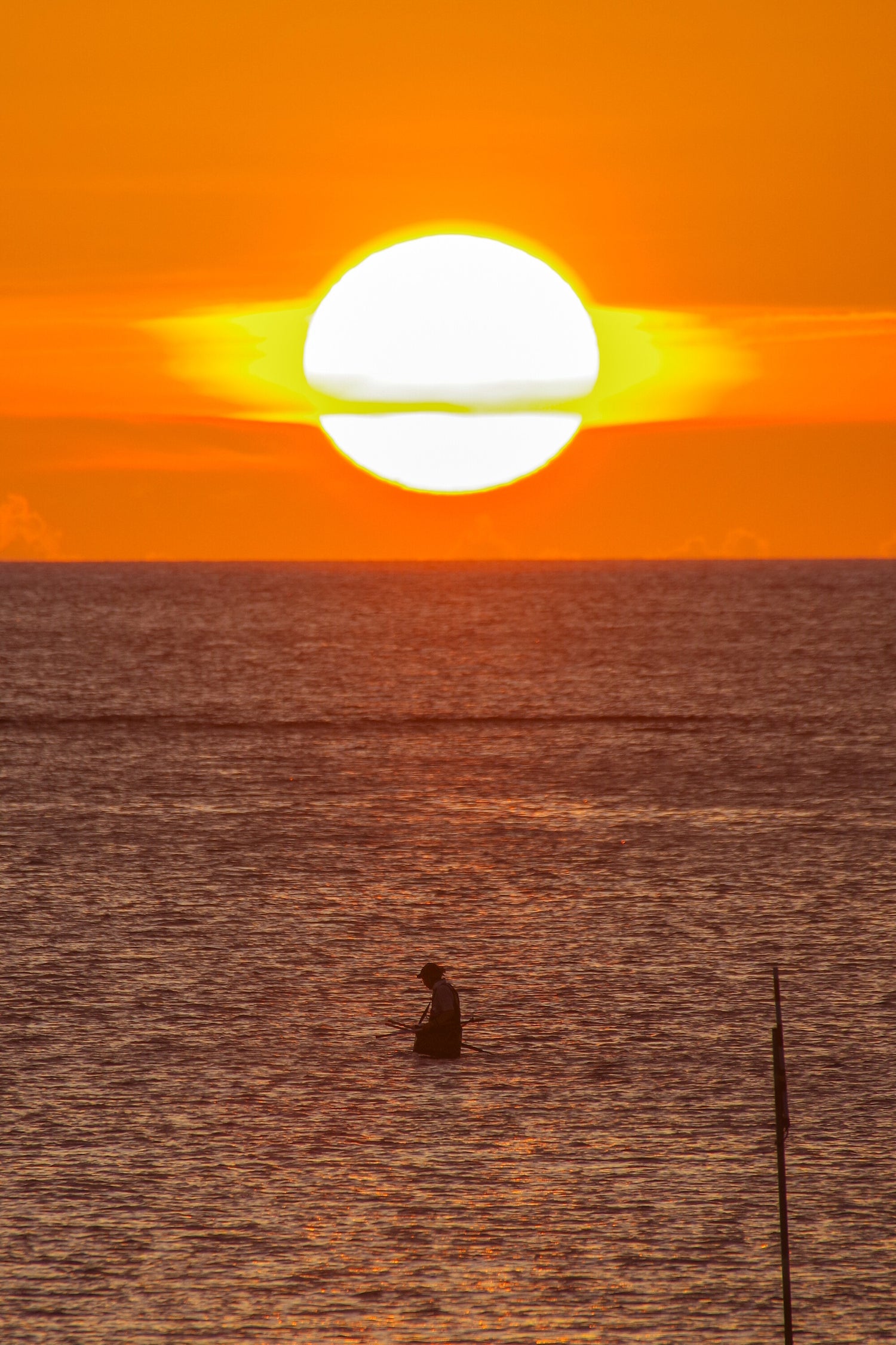 沖縄のサンセットタイム まん丸の太陽の光を浴びながら