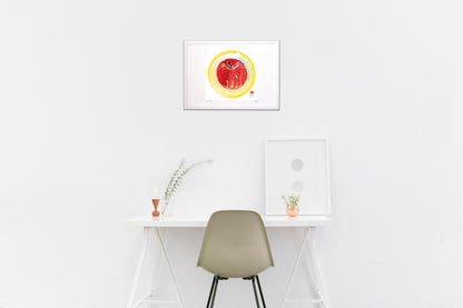 あゆわらの企画・制作・販売の作品。 画用紙のような質感の高級アート紙を採用。 発色が豊かなので繊細な色を忠実に再現。 印画紙ではないので、絵なのか写真なのか迷う不思議な印象です。 紙に光沢がなく、光を反射しないので、 蛍光灯の光で作品が見えづらくなることもありません。 色の再現性もこだわりました。 色調整は、最新技術で厳密に行うことが出来ます。正確に色を再現できるデジタル印刷で一枚一枚制作。 品質をチェックし、合格したものにあゆわらのエンボス印を入れて完成となります。