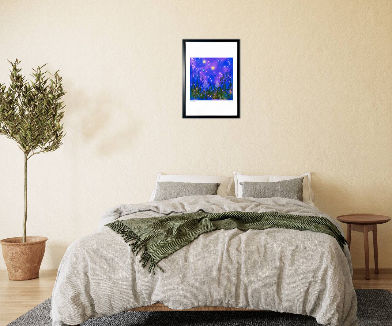 【絵画】星降る夜に★✰ 〜平和な夜への祈りを込めて〜 《水彩画 & ダイヤモンドart》