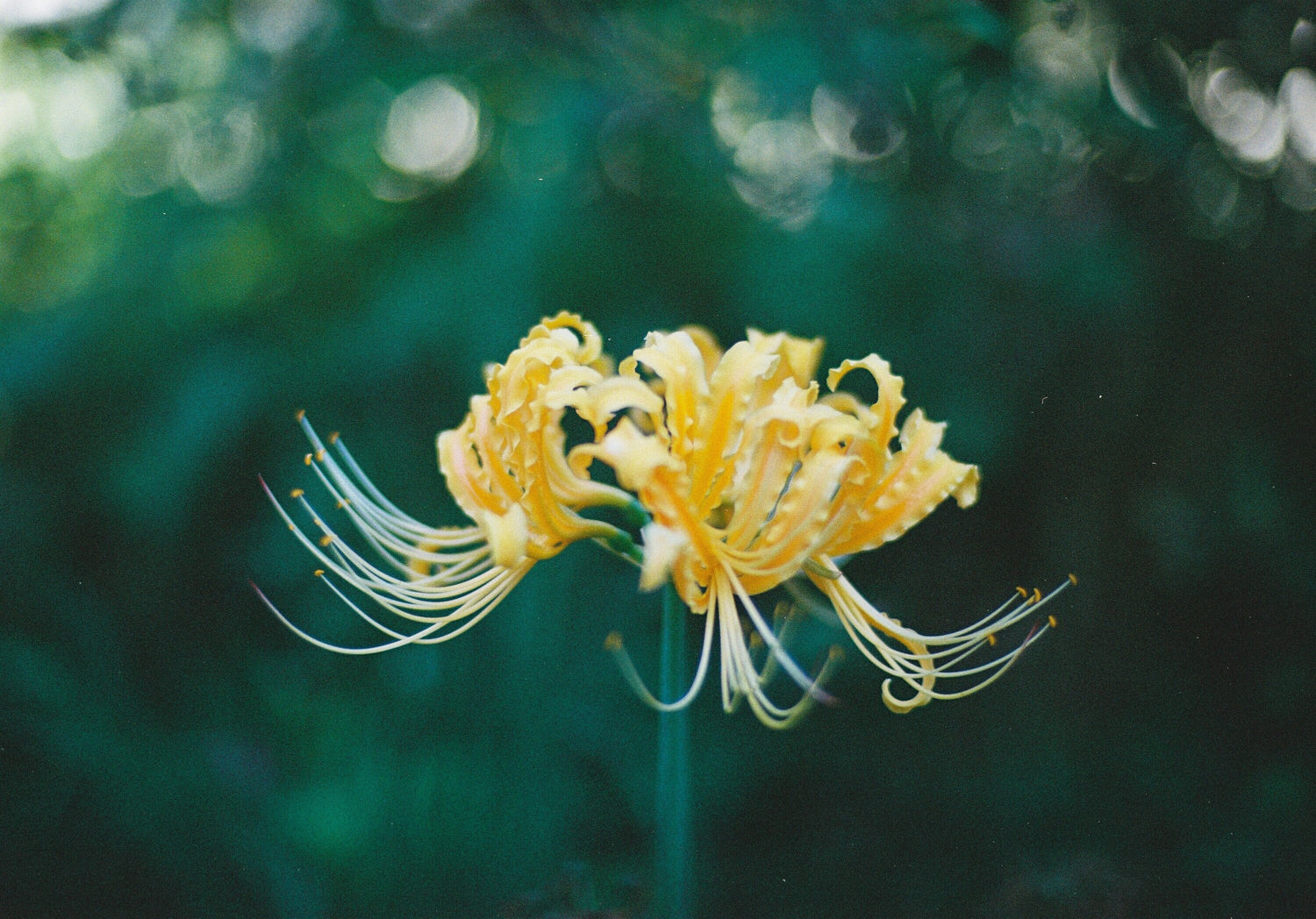 黄色の彼岸花がふっと灯る瞬間を写しました。