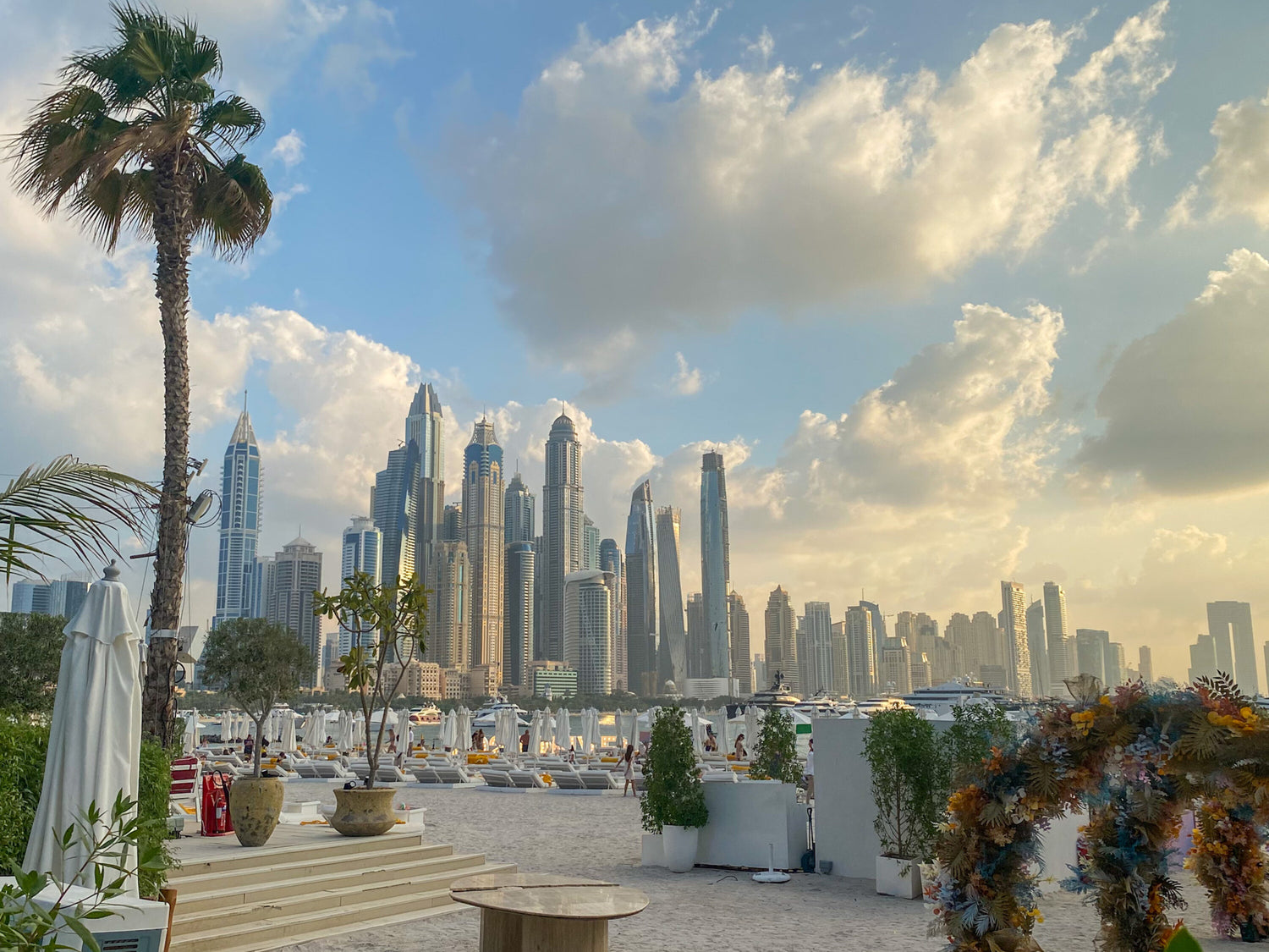 のんびりと過ごす白い砂浜の向こうには、日々発展し続ける摩天楼がそびえる。