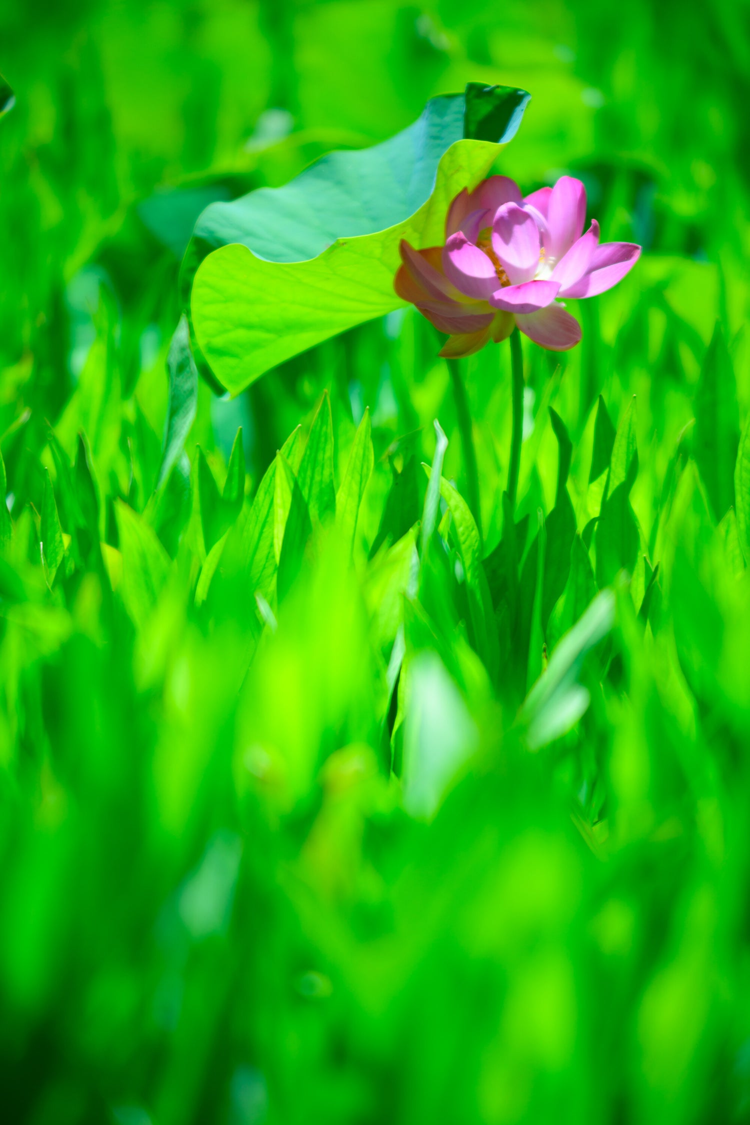 緑の世界に咲く蓮の花がとても神秘的に感じました。