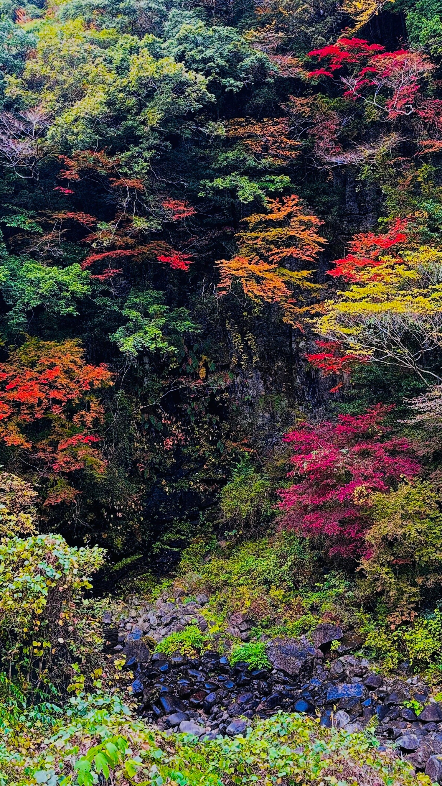 鮮やかな渓谷の秋