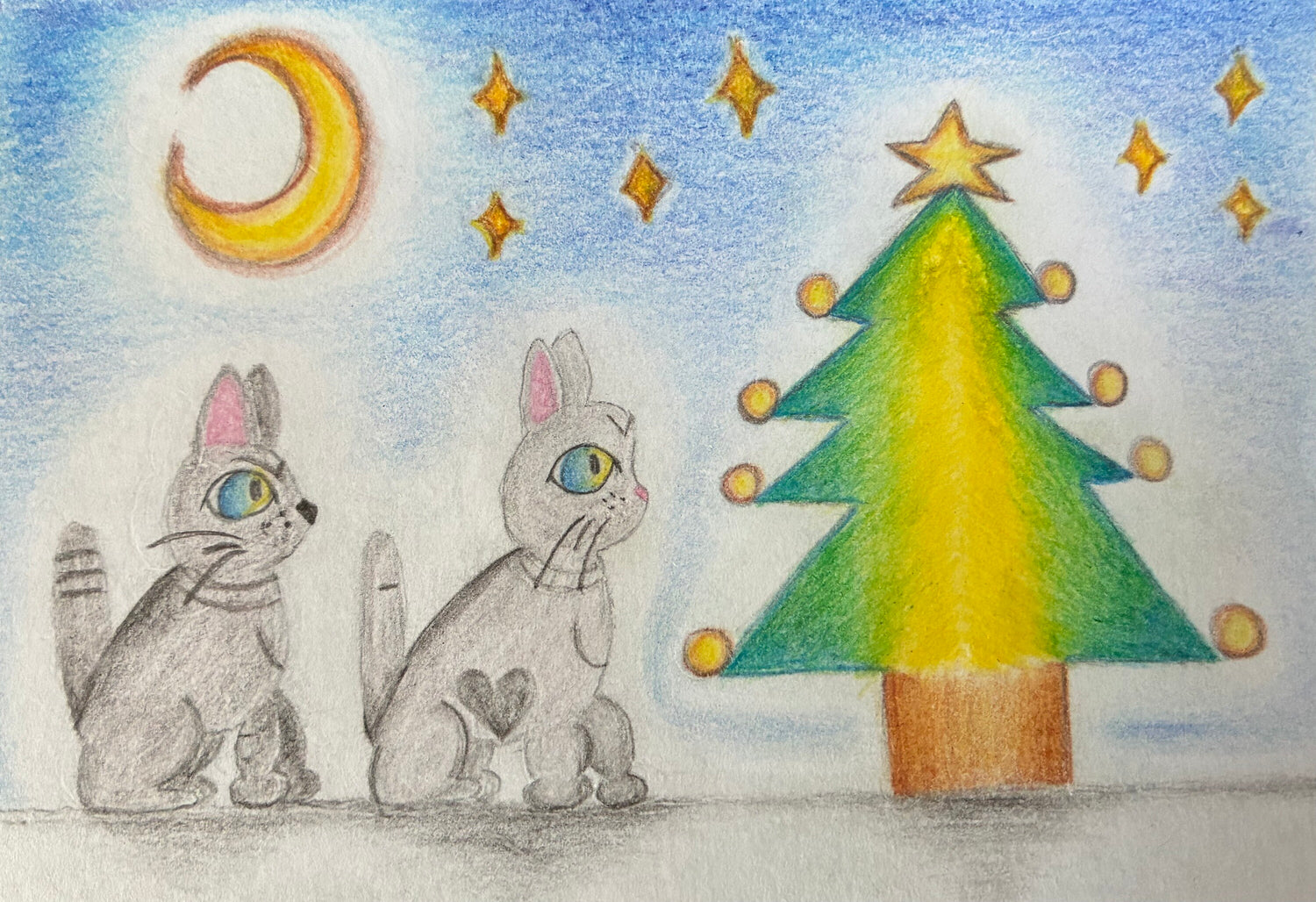 みんな、大好きなクリスマス。ねこちゃんたちも、大好き。クリスマスのワクワク感を、ねこちゃんたちを通して、色鉛筆で表現しました。
