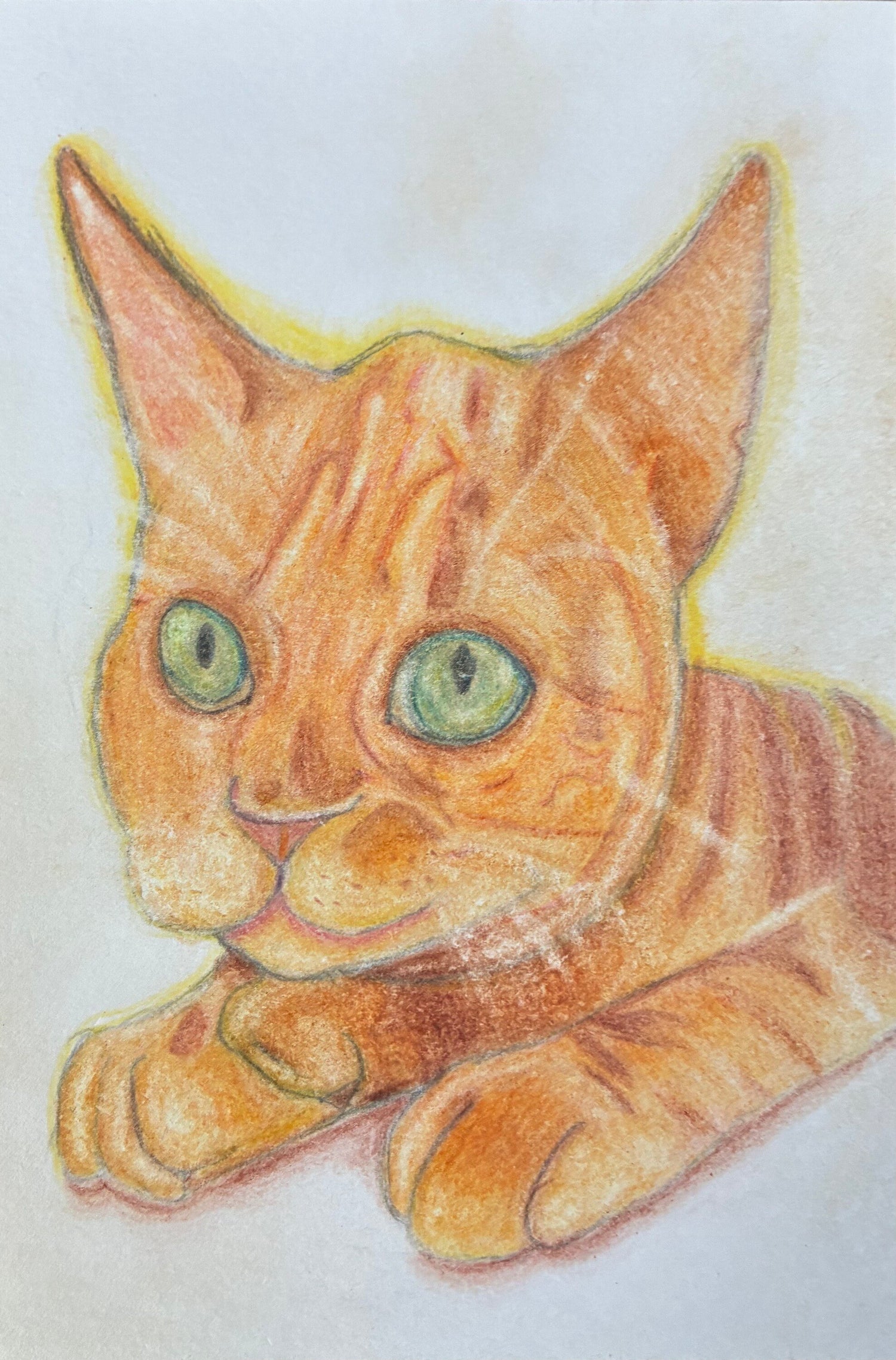 窓際に座って、くつろぐねこちゃんを色鉛筆で描きました。