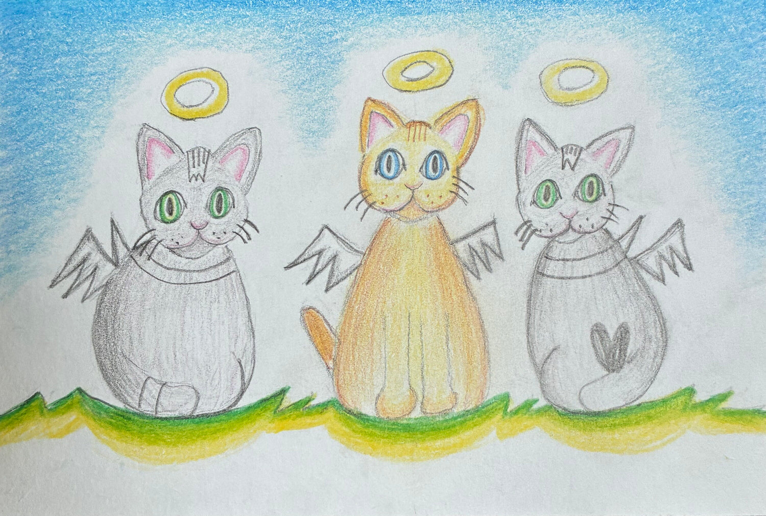 色鉛筆画 天使のねこちゃんたち
