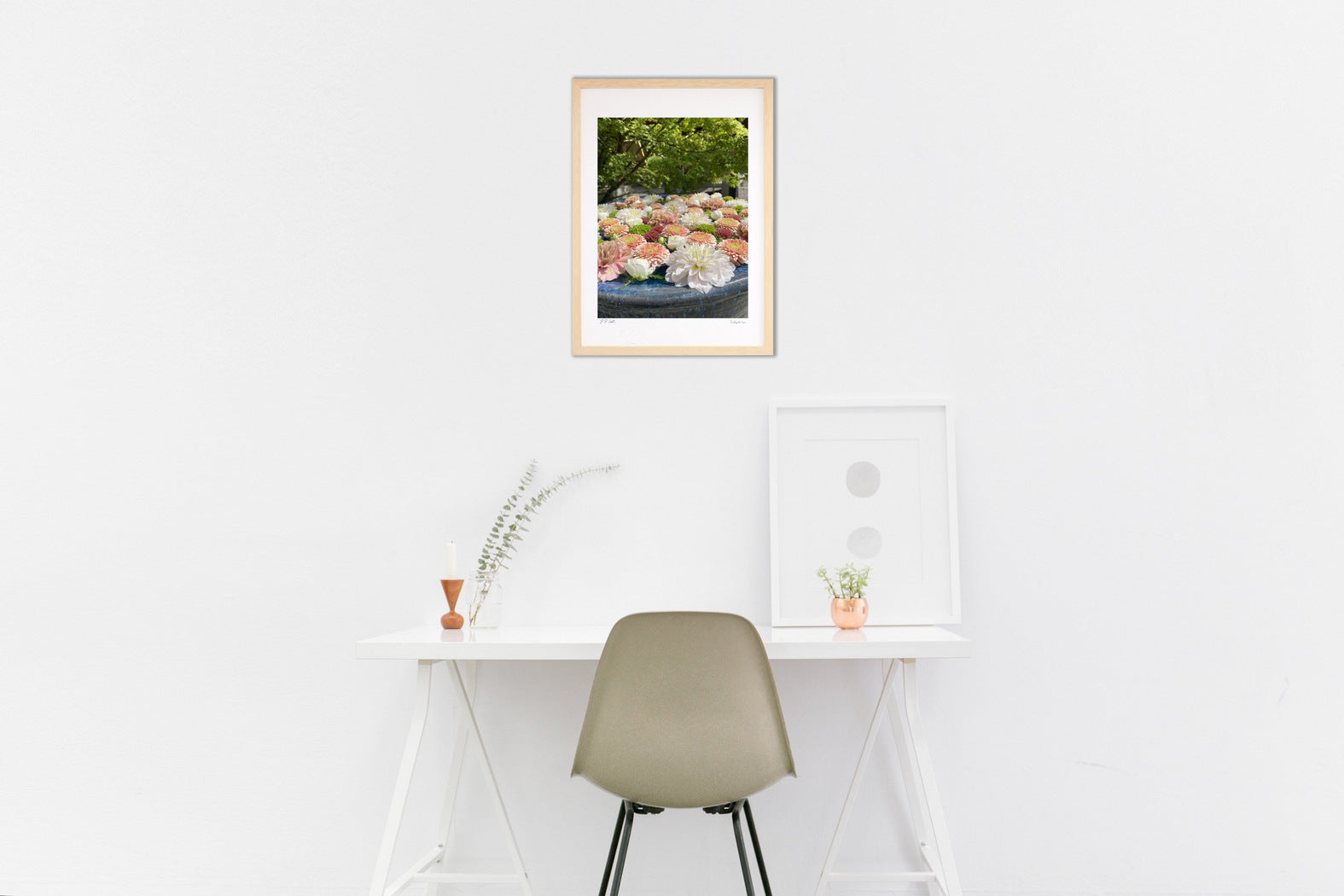 あゆわらの企画・制作・販売の作品。 画用紙のような質感の高級アート紙を採用。 発色が豊かなので繊細な色を忠実に再現。 印画紙ではないので、絵なのか写真なのか迷う不思議な印象です。 紙に光沢がなく、光を反射しないので、 蛍光灯の光で作品が見えづらくなることもありません。 色の再現性もこだわりました。 色調整は、最新技術で厳密に行うことが出来ます。正確に色を再現できるデジタル印刷で一枚一枚制作。 品質をチェックし、合格したものにあゆわらのエンボス印を入れて完成となります。