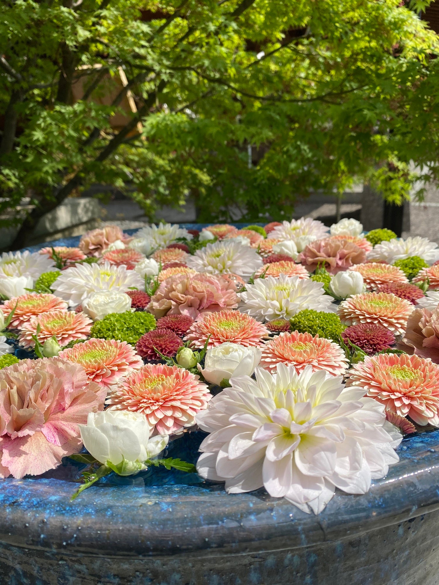 花手水と木々の緑がパワーと癒しを与えてくれます。