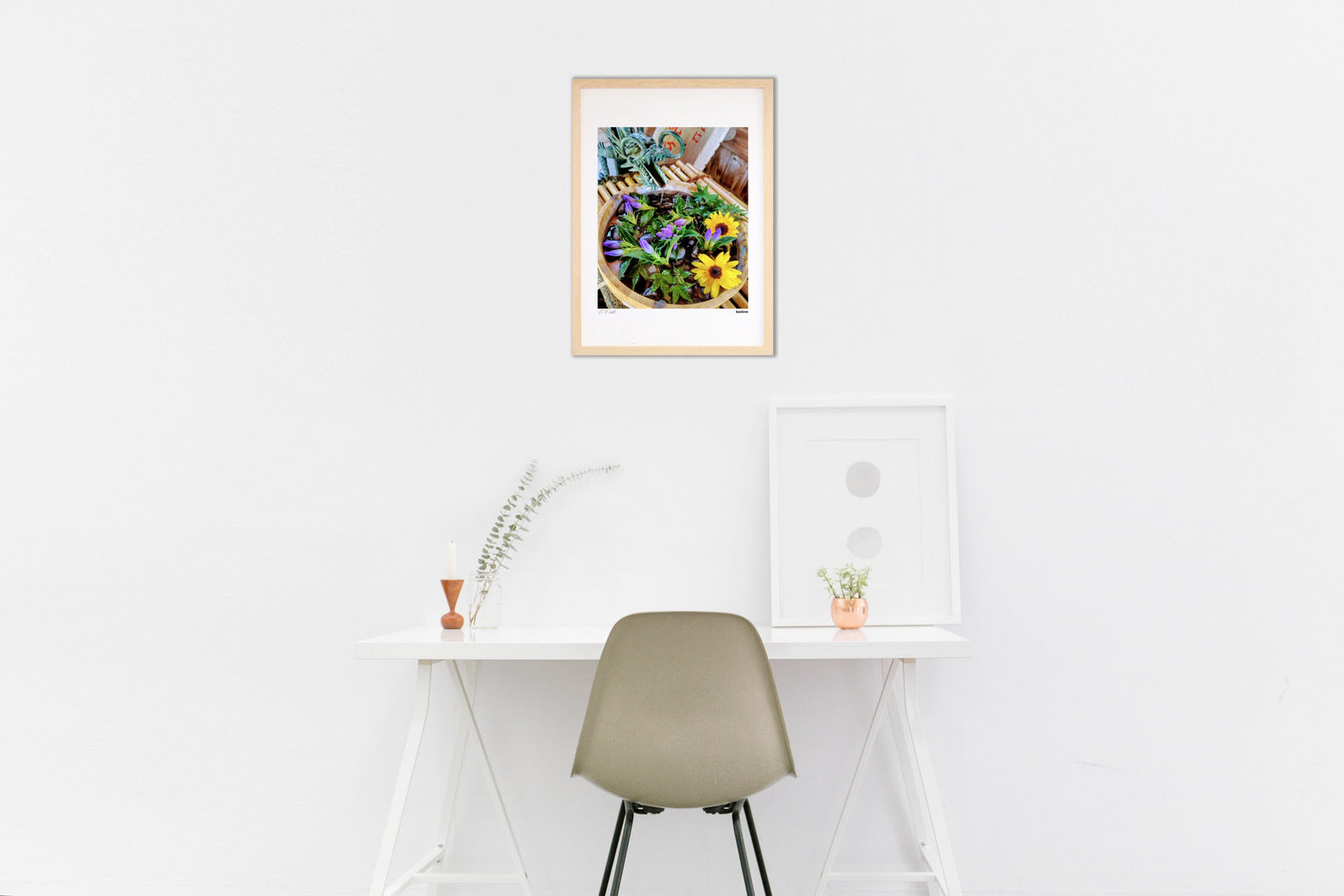 フレームカラーは作品画像の額縁でお届けします。 ご希望があれば変更も可能。ホワイト・ナチュラル・ブラウン・ブラックからお選び頂けます。ご希望の場合は、ご注文時備考欄に「○○フレーム希望」とご記入ください。