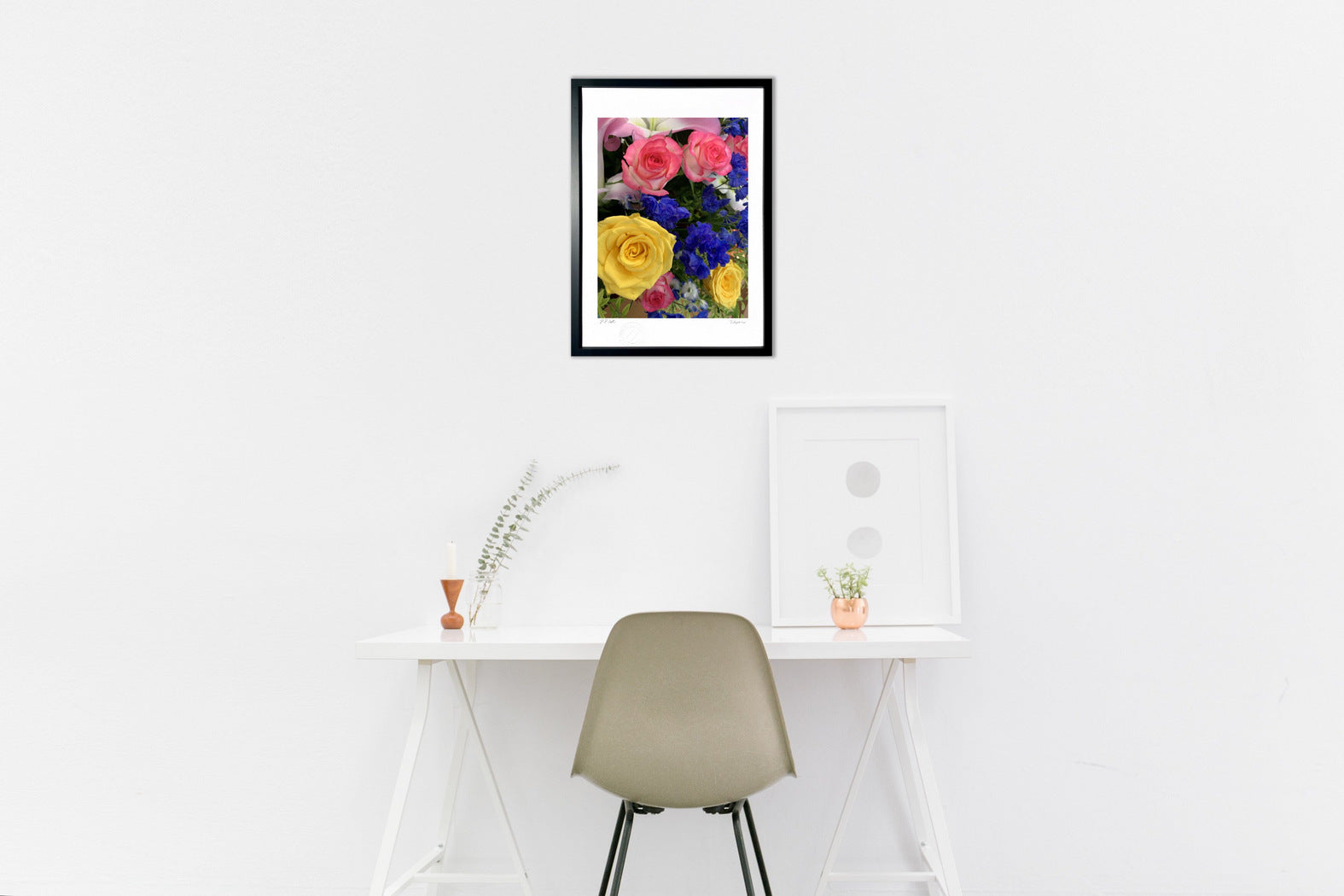フレームカラーは作品画像の額縁でお届けします。 ご希望があれば変更も可能。ホワイト・ナチュラル・ブラウン・ブラックからお選び頂けます。ご希望の場合は、ご注文時備考欄に「○○フレーム希望」とご記入ください。