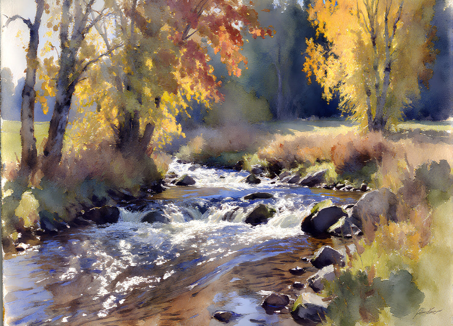 晩秋の草原の中を流れている小川です。水が透き通っています。