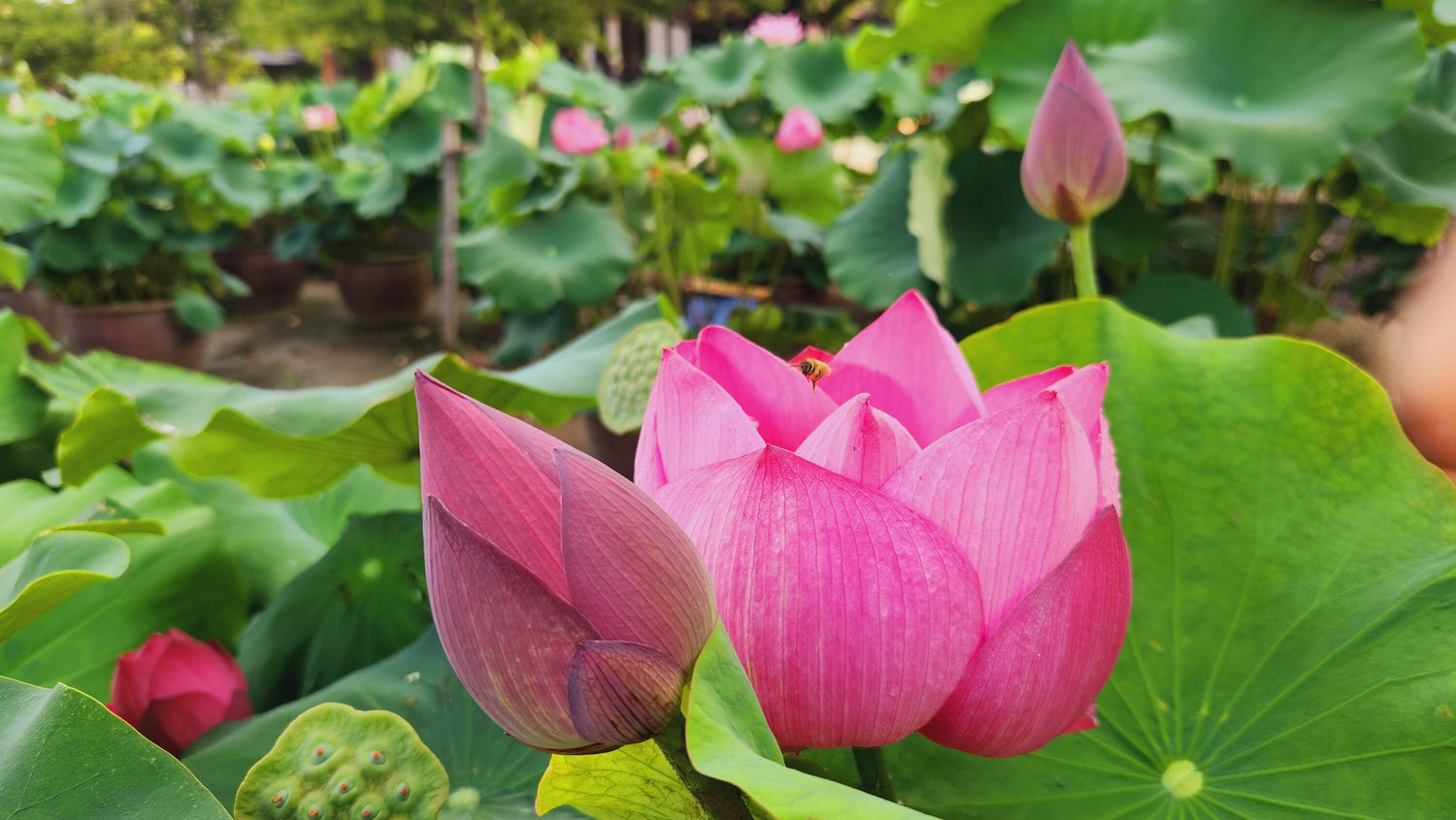 とあるお寺に咲いている、蓮の花を朝早く起きて見てきました