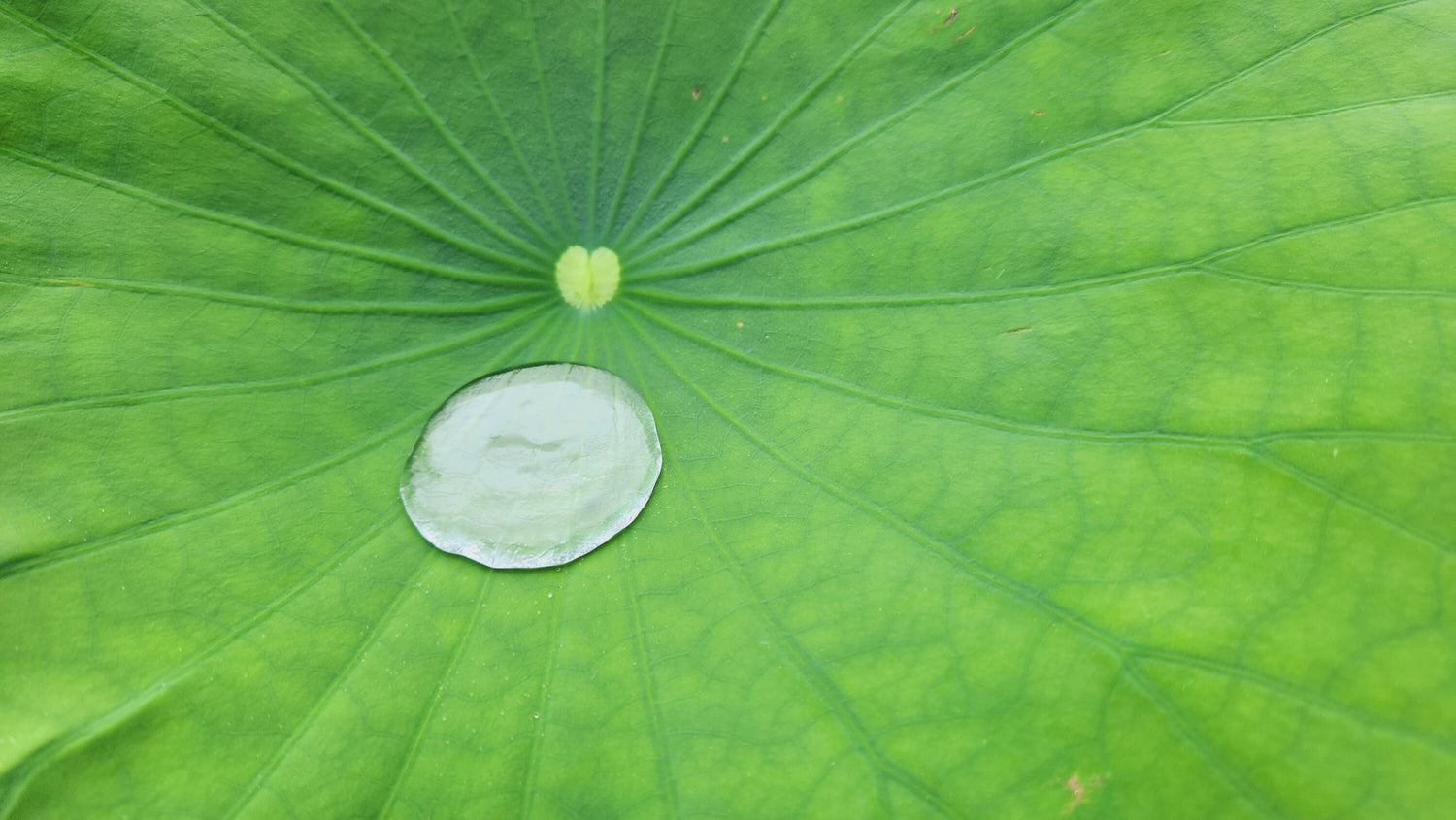雨の朝、蓮の花を見に行き、蓮の葉に水滴がふっくら膨らんでいるように見えました