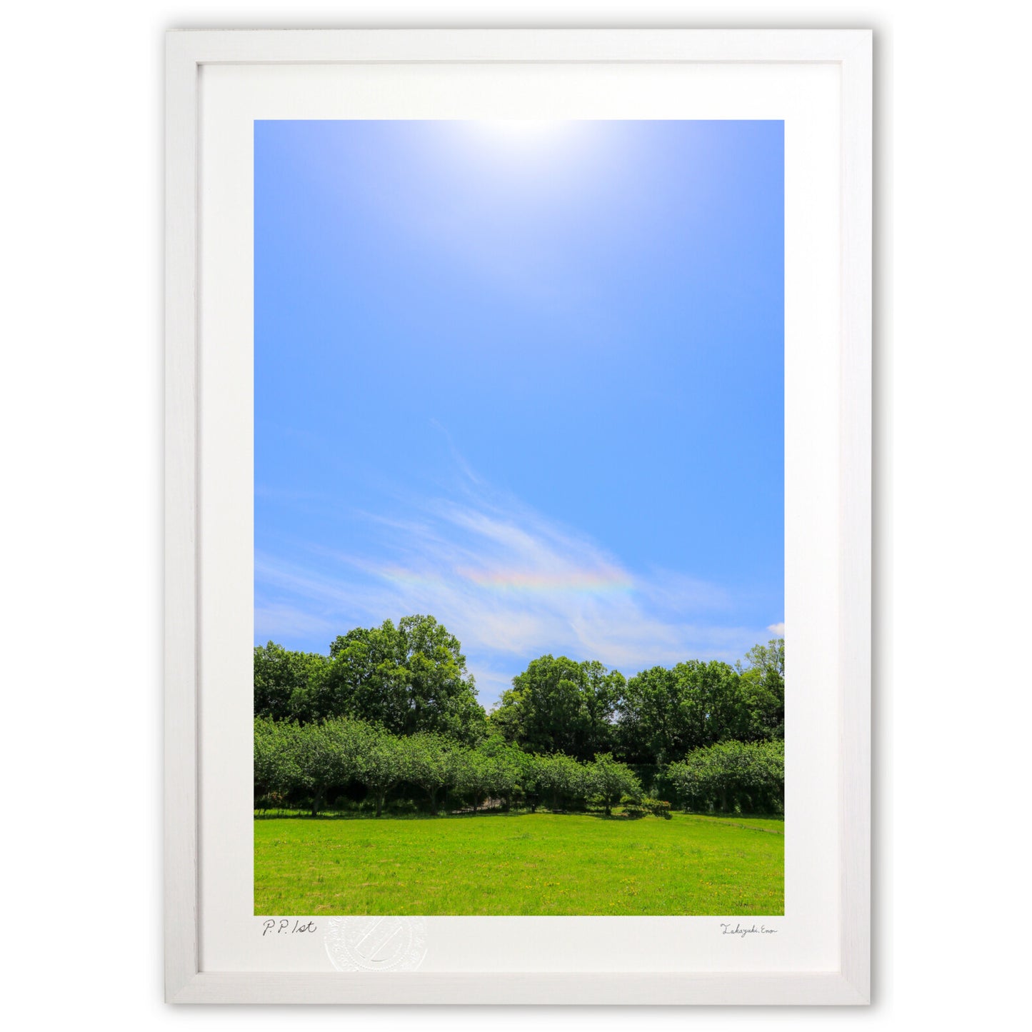 あゆわらの企画・制作・販売の作品。 画用紙のような質感の高級アート紙を採用。 発色が豊かなので繊細な色を忠実に再現。 印画紙ではないので、絵なのか写真なのか迷う不思議な印象です。 紙に光沢がなく、光を反射しないので、 蛍光灯の光で作品が見えづらくなることもありません。 色の再現性もこだわりました。 色調整は、最新技術で厳密に行うことが出来ます。正確に色を再現できるデジタル印刷で一枚一枚制作。 品質をチェックし、合格したものにあゆわらのエンボス印を入れて完成となります。