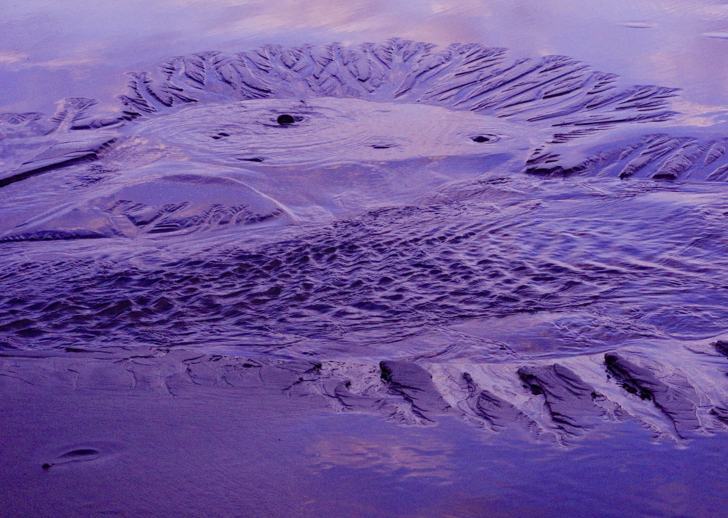 鳥海山伏流水が釜磯海岸に出ている。砂浜が侵食されて 現地に行くたびに面白い表情を見せてくれる。朝早く現地に向かい 侵食された模様に朝焼けの空が映り 魅力的な光景を見せてくれた。