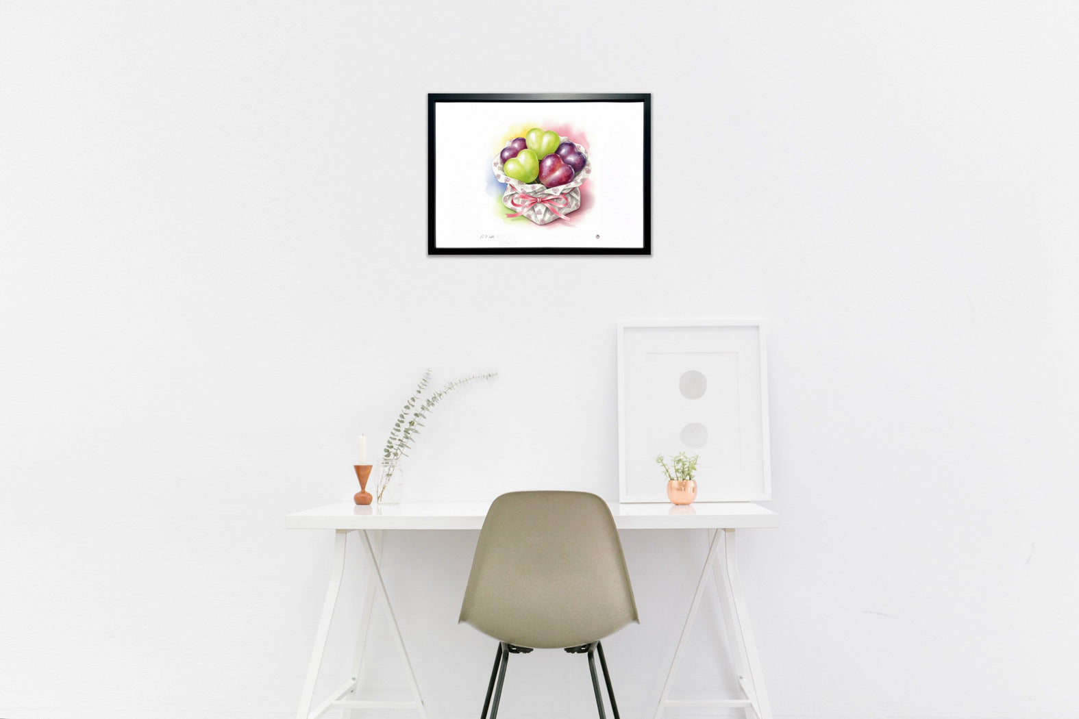 フレームカラーは作品画像の額縁でお届けします。 ご希望があれば変更も可能。ホワイト・ナチュラル・ブラウン・ブラックからお選び頂けます。ご希望の場合は、ご注文時備考欄に「○○フレーム希望」とご記入ください。
