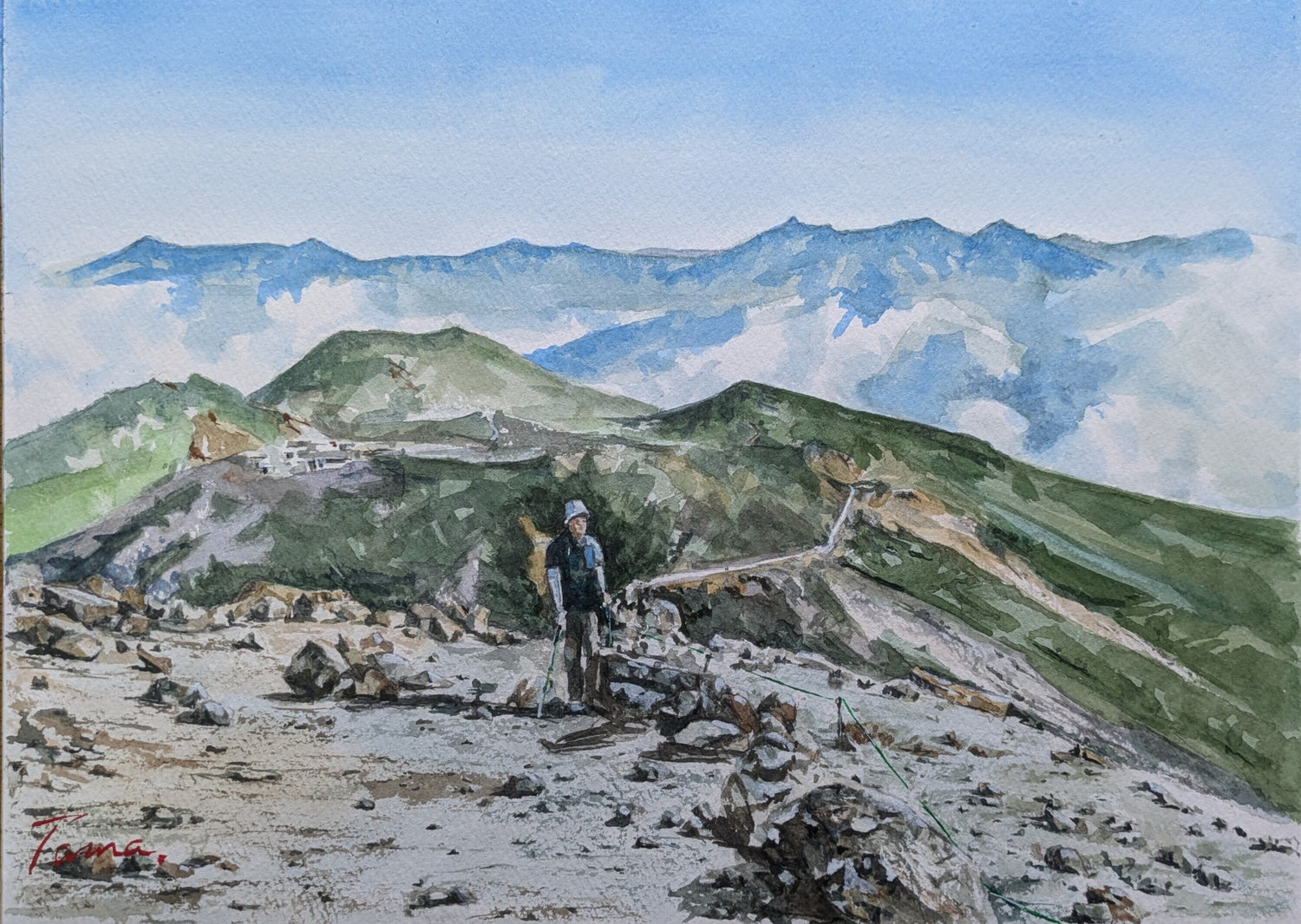 山に登って絵を描いています。