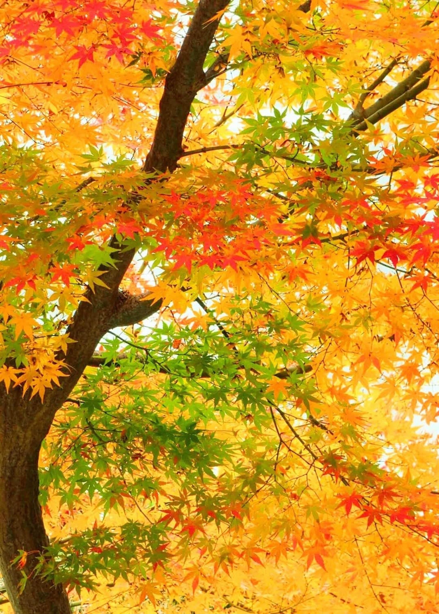 大半の木々が赤く染まっている中に、様々な色合いの木がありました。その色合いに魅せられて撮った写真です。