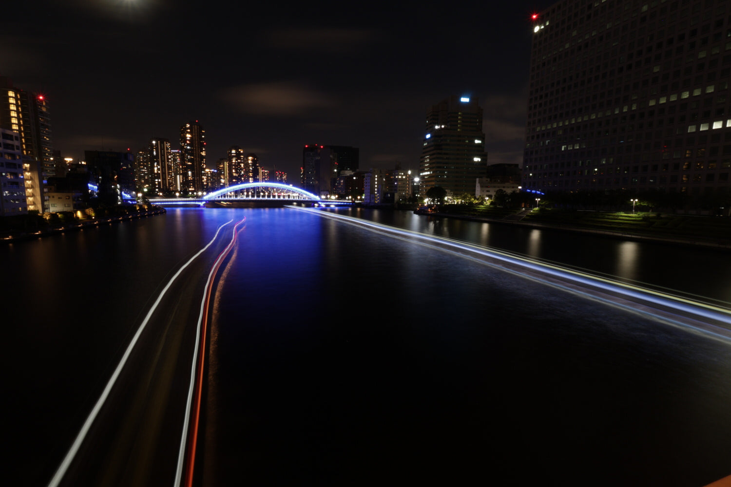 隅田川夜景と航跡