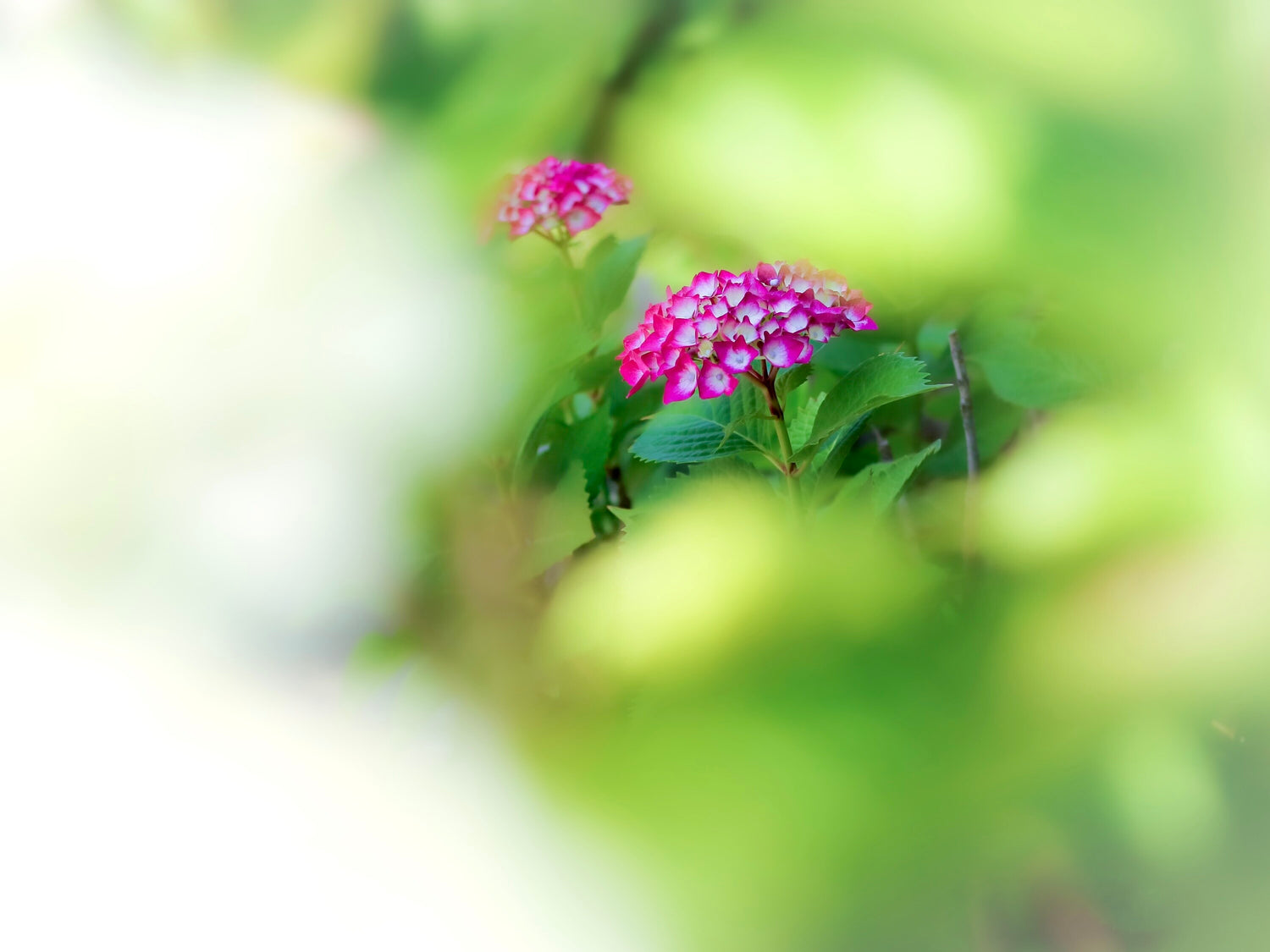 たくさんの紫陽花に囲まれた中で、ふと隙間から顔をのぞかせていた一輪。