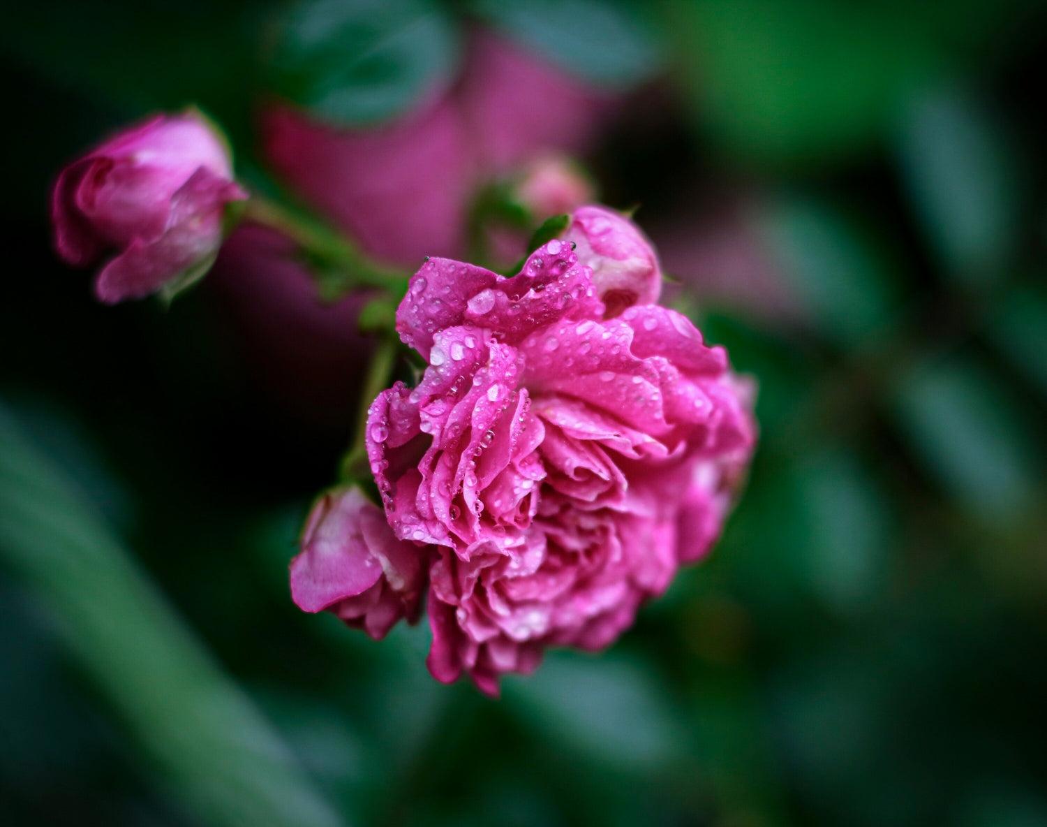 しっとりと水滴をまとう薔薇。雨のあとだからこそ際立つ深い色合いと、花の静かな強さを映しました。