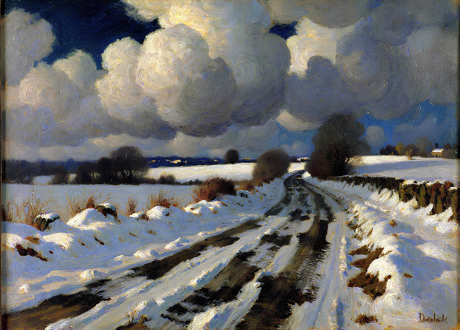 雪と雲に浮かぶ力強い白、落ち着いたダークブルー、グレー、アースカラーとのコントラスト