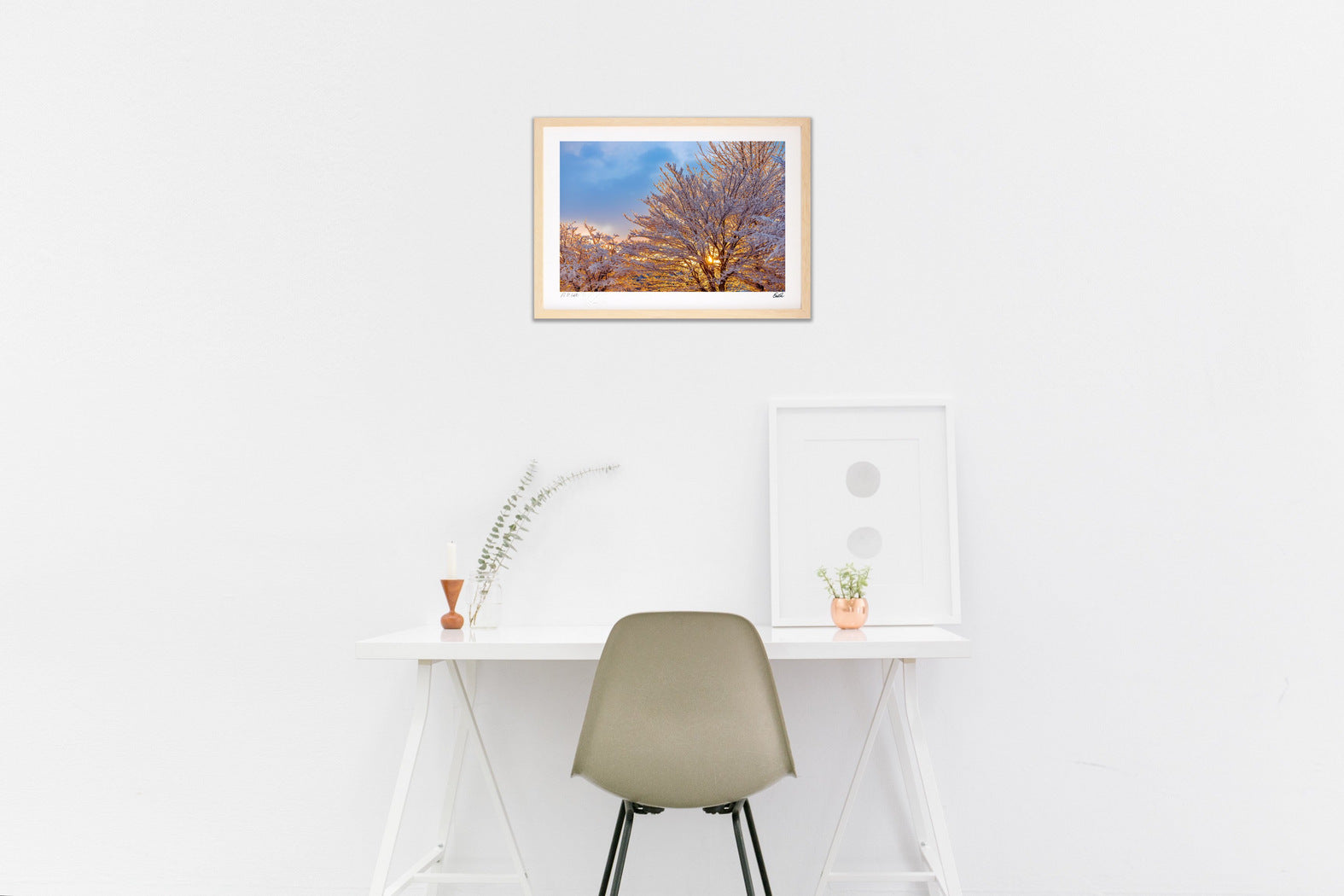 フレームカラーは作品画像の額縁でお届けします。 ご希望があれば変更も可能。ホワイト・ナチュラル・ブラウン・ブラックからお選び頂けます。ご希望の場合は、ご注文時備考欄に「○○フレーム希望」とご記入ください。
