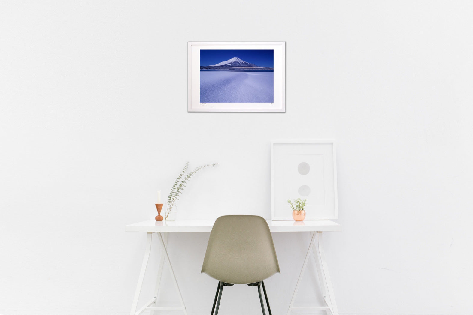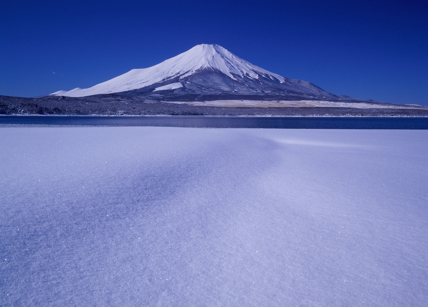 大雪の次の朝 山中湖での撮影です。出来るだけスッキリした風景にしたい為 岸からの雪原の比率を大きくとり構成したものです。