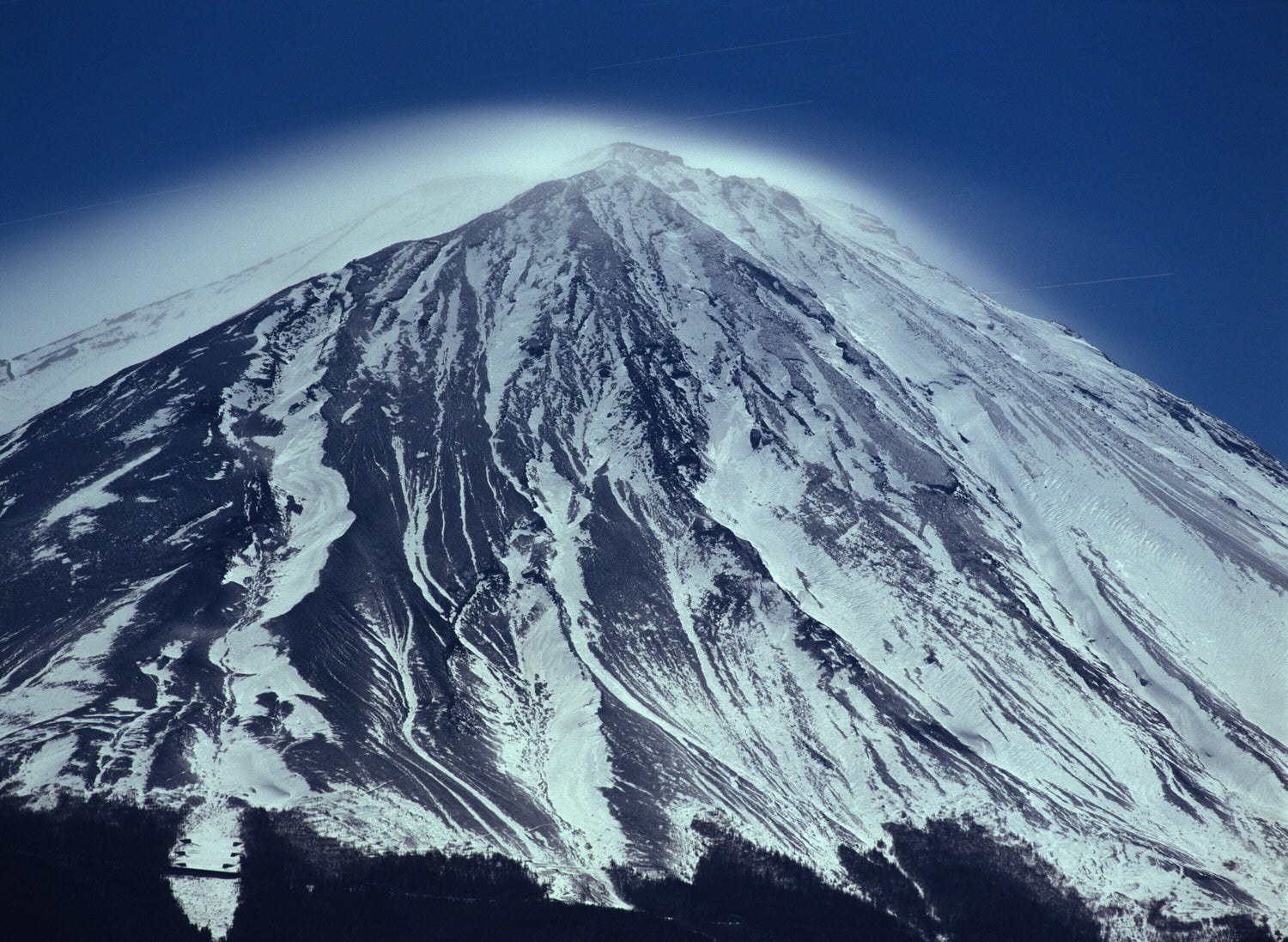 山梨県鳴沢村での撮影 満月の夜富士山の山並みを表現したく 鳴沢村に向かう。風があり頂上付近は 雪煙が待っていた。バルブでの撮影