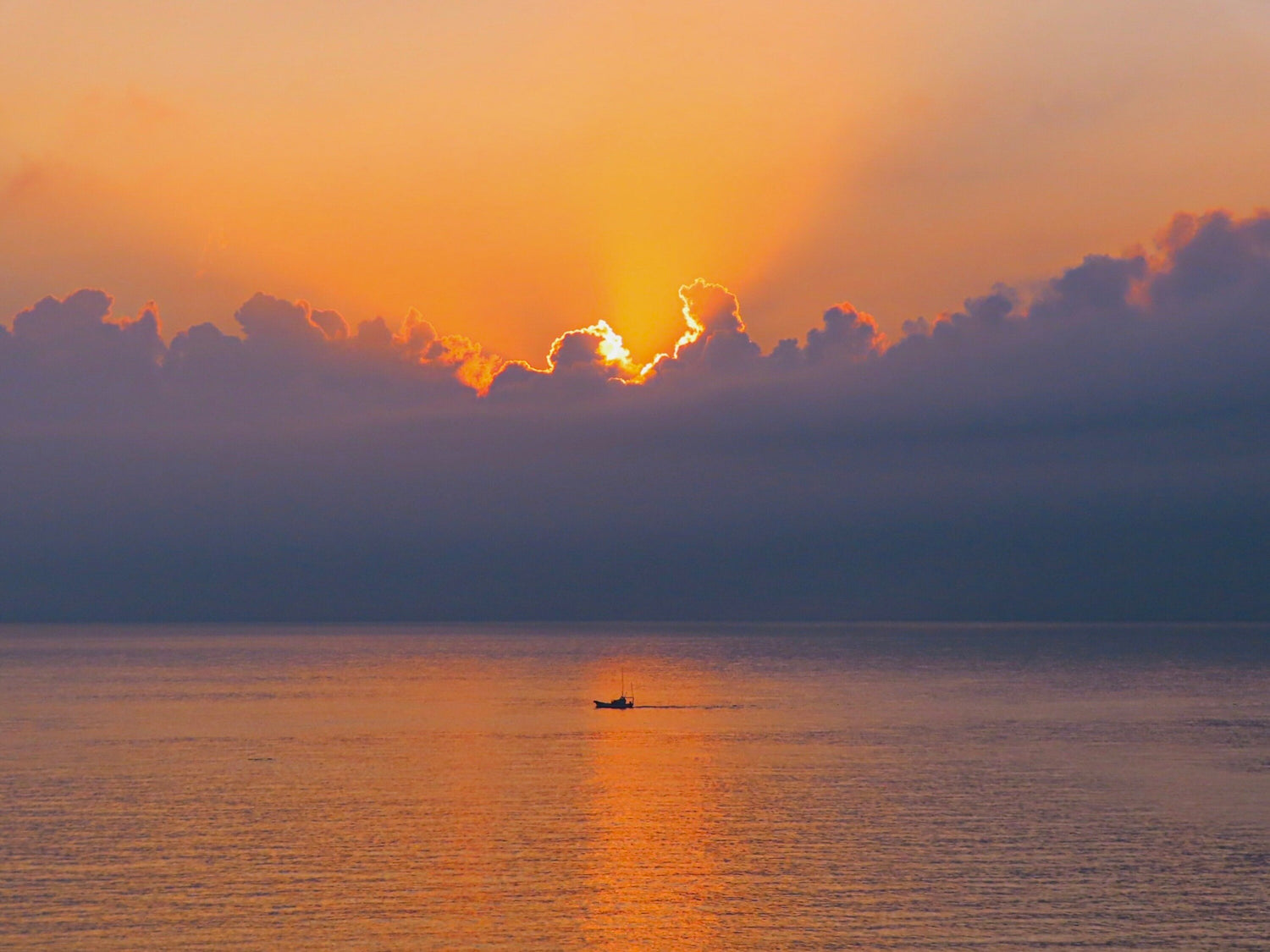 静かな海に、力強い朝日が差し込む瞬間です。