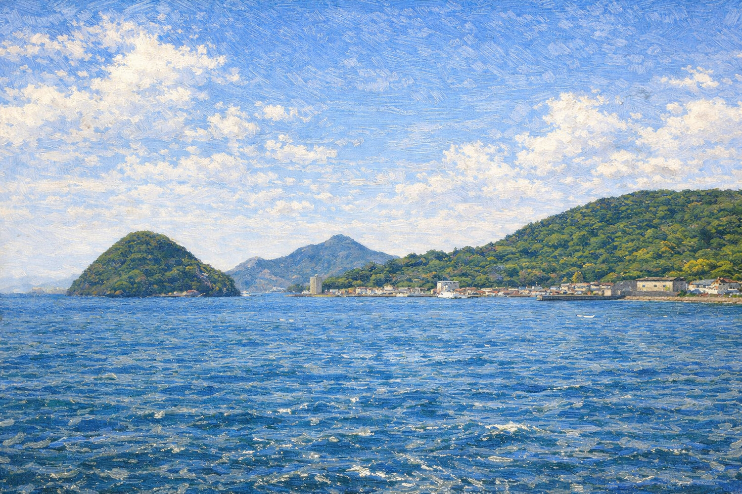 青い海と静かな港町