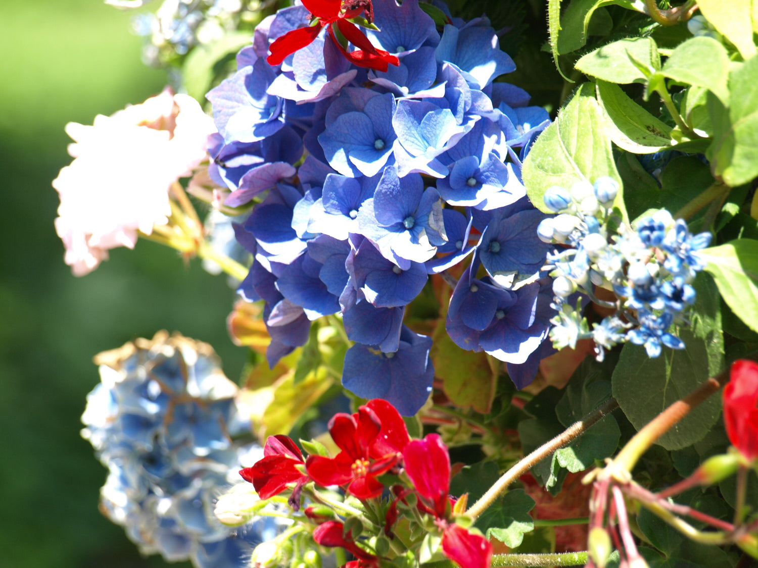 赤と白の小さな花たちが、そっと彩りを添えます。
