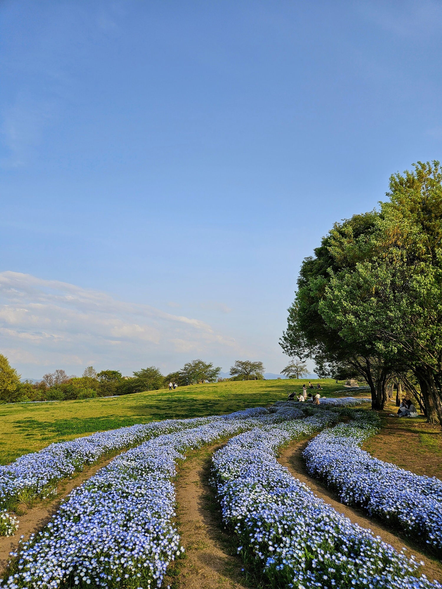 綺麗な緑とネモフィラの優しいブルーに癒されました