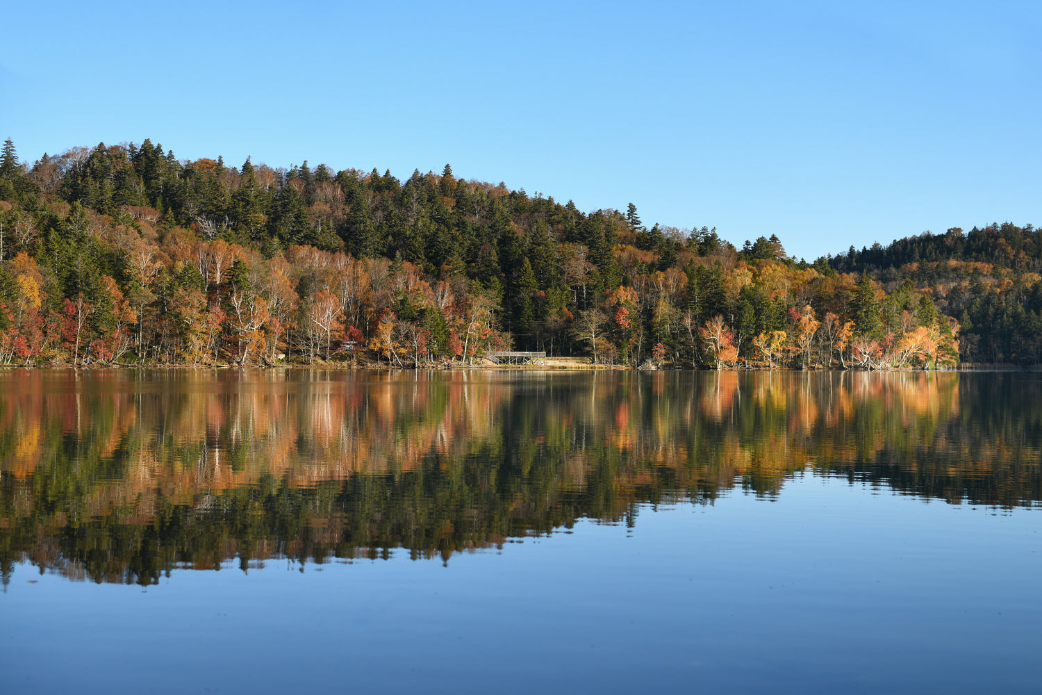 水面が静まり、綺麗に紅葉が映っていました。