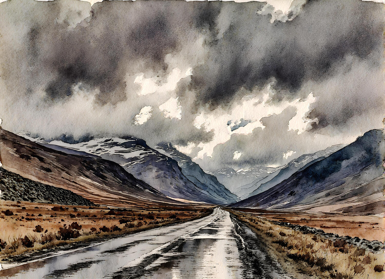 冷たく湿った地面と濡れた道