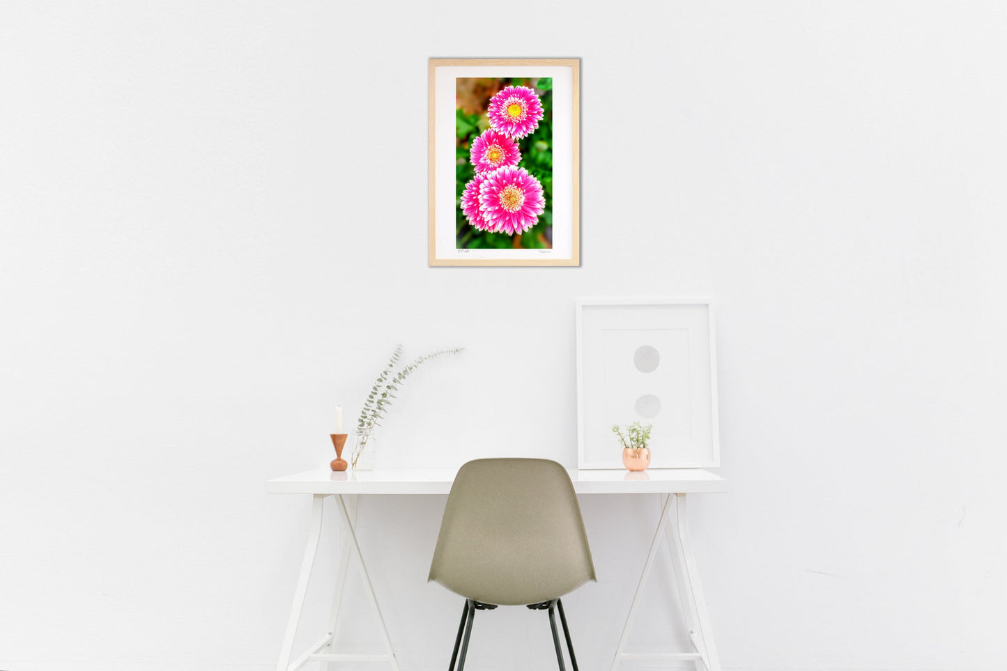 あゆわらの企画・制作・販売の作品。 画用紙のような質感の高級アート紙を採用。 発色が豊かなので繊細な色を忠実に再現。 印画紙ではないので、絵なのか写真なのか迷う不思議な印象です。 紙に光沢がなく、光を反射しないので、 蛍光灯の光で作品が見えづらくなることもありません。 色の再現性もこだわりました。 色調整は、最新技術で厳密に行うことが出来ます。正確に色を再現できるデジタル印刷で一枚一枚制作。 品質をチェックし、合格したものにあゆわらのエンボス印を入れて完成となります。