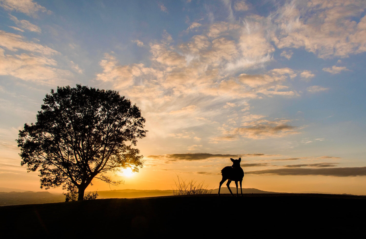 鹿と夕焼けのコラボが美しいです。
