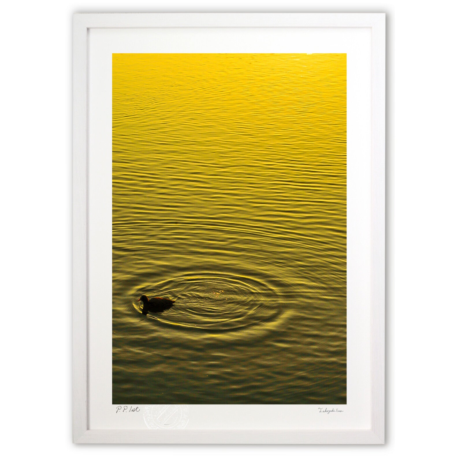 あゆわらの企画・制作・販売の作品。 画用紙のような質感の高級アート紙を採用。 発色が豊かなので繊細な色を忠実に再現。 印画紙ではないので、絵なのか写真なのか迷う不思議な印象です。 紙に光沢がなく、光を反射しないので、 蛍光灯の光で作品が見えづらくなることもありません。 色の再現性もこだわりました。 色調整は、最新技術で厳密に行うことが出来ます。正確に色を再現できるデジタル印刷で一枚一枚制作。 品質をチェックし、合格したものにあゆわらのエンボス印を入れて完成となります。
